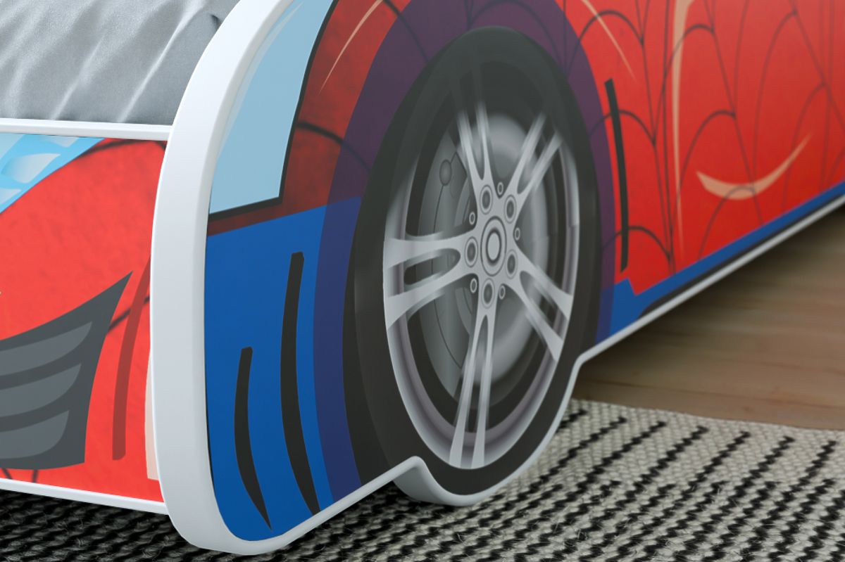 Lit enfant voiture avec motif super-héros et sommier FLEX. .. plus