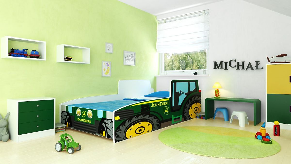 Lit inspiré du monde de la ferme avec motif tracteur vert. .. plus
