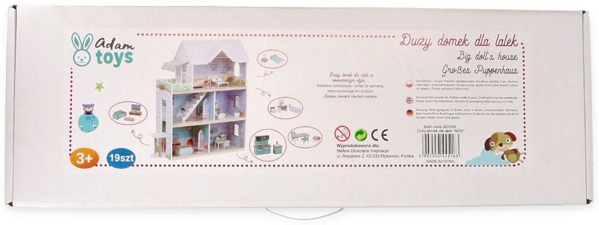 Les maisons de poupées offrent divers scénarios de jeu qui permettent aux enfants d'améliorer leurs compétences linguistiques, de développer leur imagination et leur créativité. Les petites filles peuvent aménager les intérieurs des maisons, créer de nouvelles histoires et s'exercer à résoudre des problèmes. Jouer avec une maison de poupée enseigne également le partage avec les autres, la coopération et la création d'amitiés. La grande maison offre la possibilité d'innombrables arrangements, de jeux de rôle, d'exercices d'émotions et de compétences sociales. Un excellent divertissement dans un environnement approprié. La maison est conçue pour que chacun y trouve son compte. Chaque étage a des pièces différentes et une couleur différente.