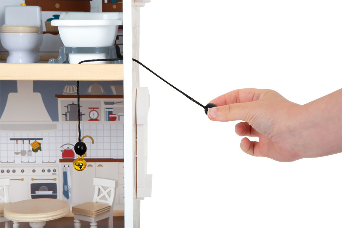 La salle à manger et le salon, la chambre d'enfant et la salle de bain, ainsi que la chambre à coucher et la loggia offrent suffisamment d'espace pour jouer. Escaliers, portes coulissantes, fenêtres ouvrables, tables de chevet avec tiroirs et une véritable sonnette qui annonce l'arrivée des visiteurs, accompagnés de 12 pièces de mobilier et de nombreux accessoires, font du jeu un plaisir parfait. La façade ouverte facilite le jeu et permet à plusieurs enfants de jouer avec les poupées en même temps. Le produit nécessite un assemblage, livré avec un manuel d'instructions détaillé. Une grande maison de poupée en bois stable avec un design détaillé à l'intérieur et à l'extérieur. La façade ouverte facilite le jeu collectif de plusieurs enfants. 3 étages reliés par un escalier, 5 pièces et une terrasse offrent un espace de jeu. Mobilier avec détails en bois et pièces en plastique pour un amusement réaliste. Sonnette fonctionnelle et autres éléments comme des portes coulissantes, des fenêtres ouvrables, une table de chevet avec tiroirs. Principales caractéristiques : Grâce à sa façade extérieure lumineuse et à son design moderne, la villa s'intègre dans n'importe quelle chambre d'enfant ou salon. Assez grand pour le jeu collectif de plusieurs enfants. Sonnette fonctionnelle et éléments de mobilier. Comprend 12 pièces de mobilier avec accessoires. Convient aux poupées jusqu'à 12 cm (par exemple, LE11804). Récompense de jouet : Top 10 Spielzeug Nominiert 2021