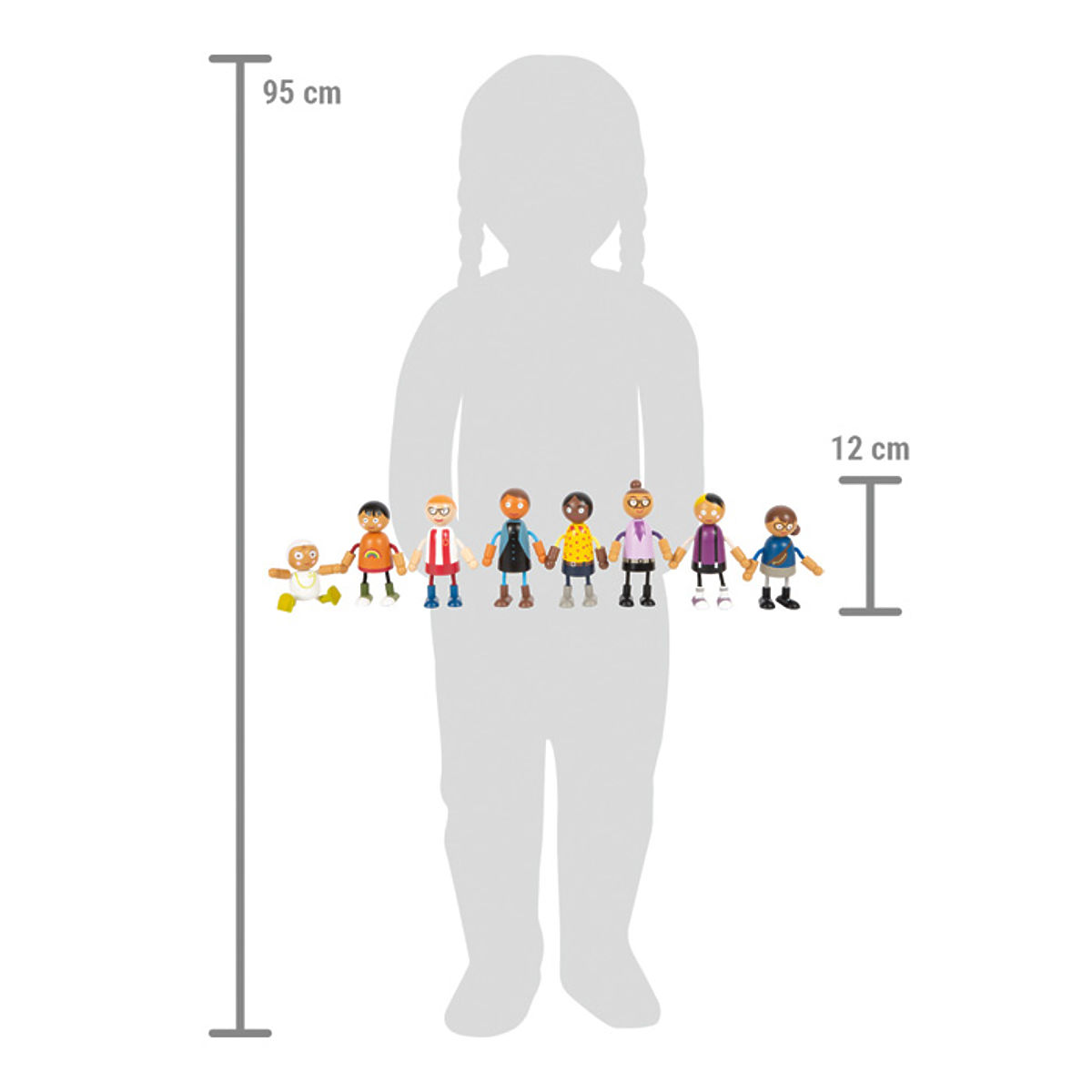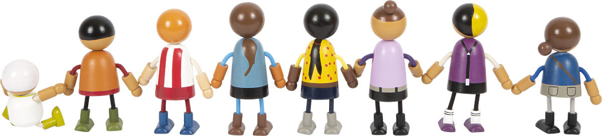 Cette grande famille de poupées flexibles en bois convient à toutes les maisons de poupées. Elle se compose de 8 membres de la famille de différents sexes et âges. Les poupées flexibles ont une tête et un corps en bois massif, tandis que leurs bras et jambes sont en textile, flexibles. Deux paires de parents, trois enfants et un bébé dans un porte-bébé qui peut être attaché aux autres poupées flexibles, offrent de nombreuses possibilités de jeu. Le jeu de rôle actif apprend aux enfants de manière ludique à quel point le style de vie peut être varié. Le jeu de rôle favorise le développement de l'identification, de la communication, de l'imagination et des compétences sociales et émotionnelles. Les poupées flexibles sont de taille facilement manipulable pour les petites mains des enfants. Un complément idéal pour la villa urbaine avec maison de poupées (11802) ou la villa urbaine compacte (12277). Principales caractéristiques : famille de poupées flexible de 8 membres qui stimule l'imagination, la créativité et les compétences socialesdivertissement réaliste grâce aux bras et jambes flexiblesflexible, robuste avec des détails richesla taille des figurines est facilement manipulable pour les mains des enfants