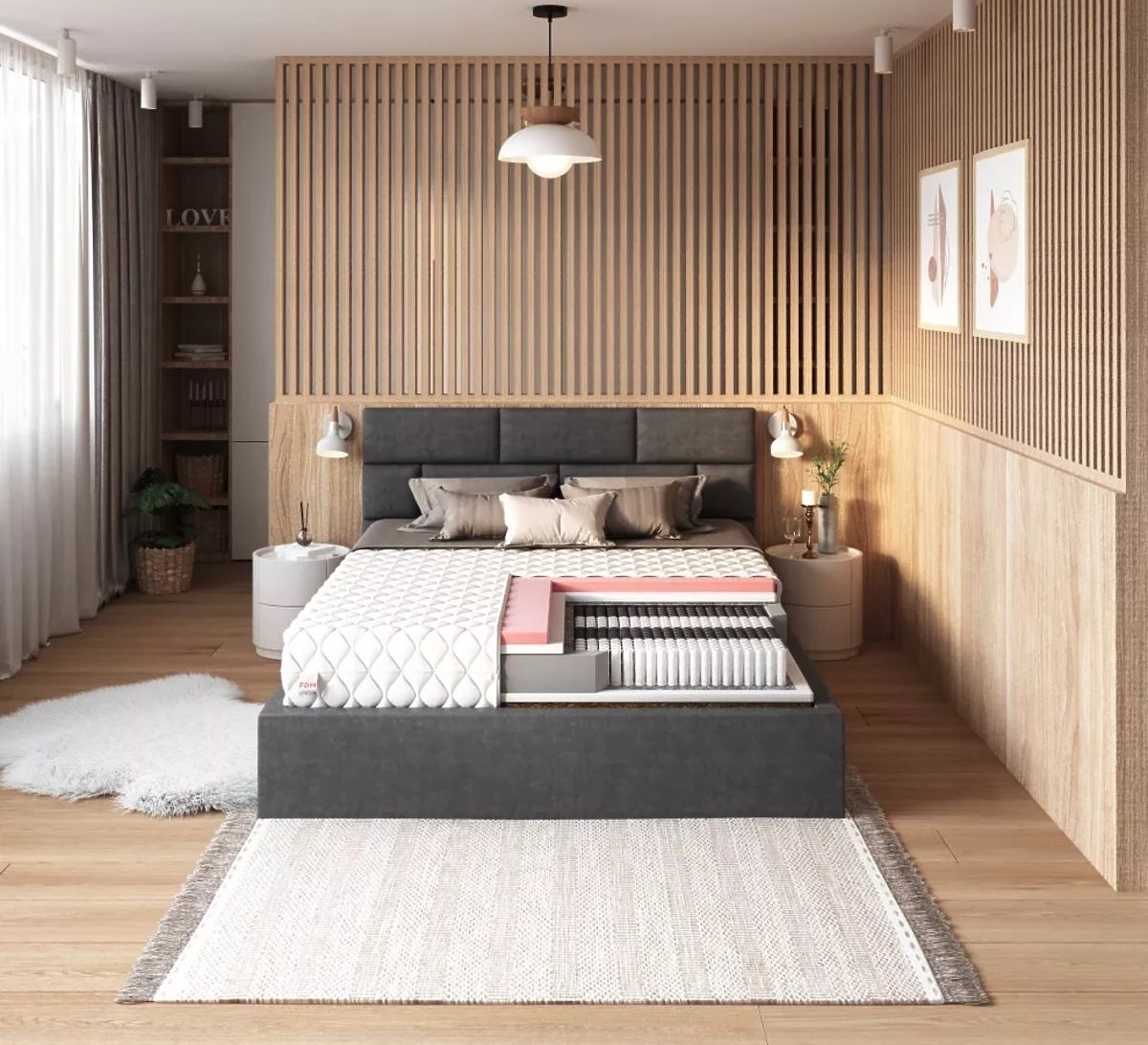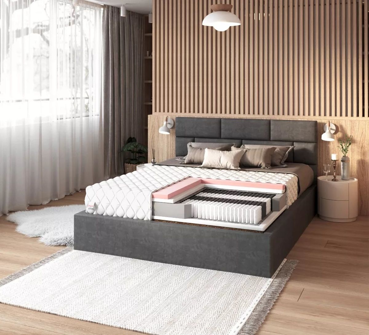 Avec le matelas IVREA d' une hauteur de 22 cm au design double face, vous profiterez exactement du sommeil dont vous avez besoin. Il se compose de plusieurs couches différentes, dont la base est constituée de ressorts ensachés avec 7 zones de soutien corporel. Grâce à cela, chaque partie de votre corps sera dans un confort total pendant votre sommeil. De plus, il réduit l'inconfort résultant des mouvements de l'autre personne et assure ainsi un sommeil profond et ininterrompu.