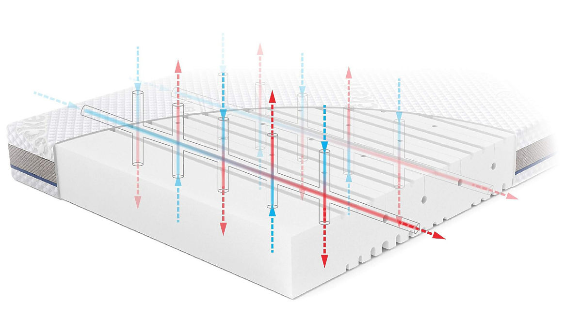 Le filet de la housse et les canaux verticaux et horizontaux sont entièrement intégrés - créant ainsi un réseau étendu et le matelas respire.