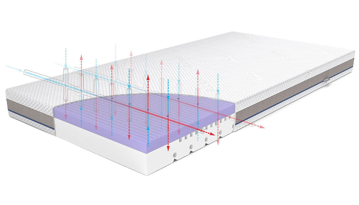 Le réseau de la housse et les canaux verticaux et horizontaux sont entièrement intégrés - grâce à cela, un réseau étendu est créé et le matelas respire.