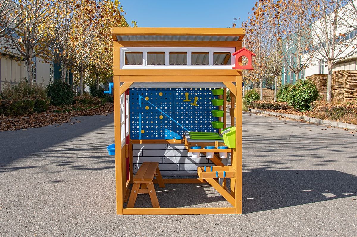 Offrez à votre enfant un espace pour découvrir, construire et créer. Cette maison de jeu en bois innovante stimule la créativité, l'autonomie et l'imagination lors du jeu quotidien. Avec son apparence de petit abri à outils et son toit incliné, elle propose de nombreux éléments de jeu et pratiques bien pensés. La maison est équipée de portes "de garage" enroulables avec une poignée, d'un mur à chevilles et d'une table intérieure surélevée avec un plan de travail pour les travaux manuels. Elle comprend également des compartiments de rangement de différentes tailles pour aider à maintenir l'ordre. L'espace de rangement extérieur peut également être utilisé comme banc pour s'asseoir ou comme surface de travail. L'extérieur de la maison est complété par une mangeoire pour oiseaux et une jardinière de fenêtre, favorisant le jeu en contact avec l'environnement. La maison offre également des portes traditionnelles et une petite entrée pour les animaux de compagnie, élargissant les possibilités de jeu et impliquant toute la famille. Contenu de la maison : portes traditionnelles et petite entrée pour les animaux de compagnie, portes de garage avec poignée pour l'ouverture et la fermeture, table avec espace de rangement en dessous, banc en bois mobile, jardinières, gobelets, mangeoire, espaces de rangement, accessoires pour le mur à chevilles. Principales caractéristiques : favorise le développement des compétences sociales, design moderne, fabrication de qualité et détaillée, fabriqué en bois, adapté pour le jeu de plusieurs enfants. Informations pour les partenaires B2B : dropshipping en République Tchèque !