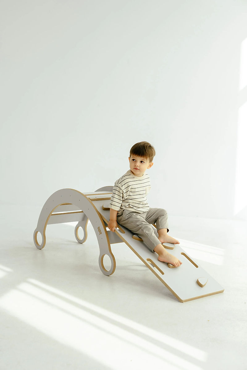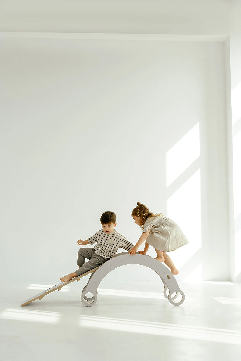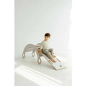 Banaby.fr » Montessori / Bascules Montessori / Balançoire en bois Montessori avec toboggan/mur d'escalade M - blanc