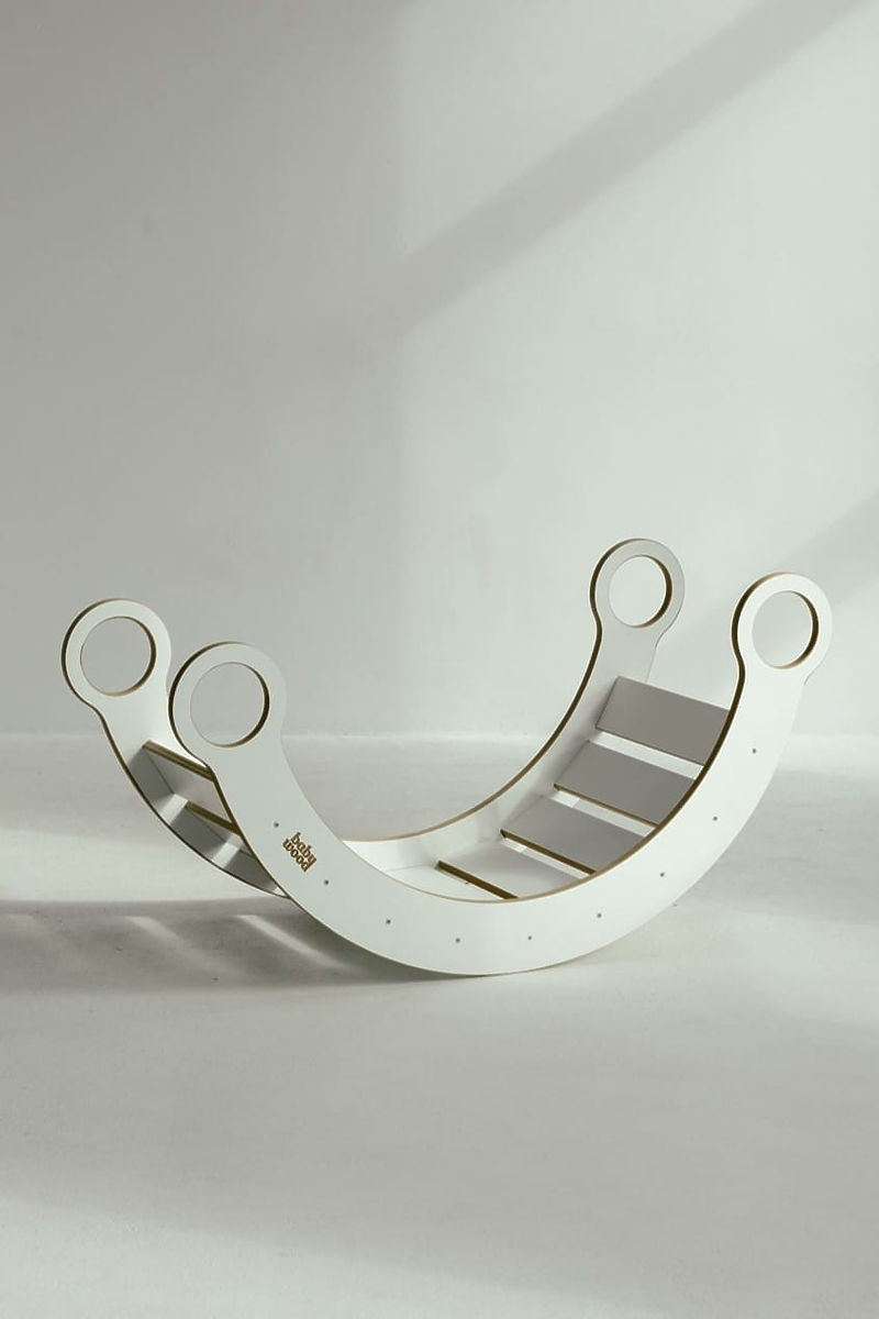 Banaby.fr » Montessori / Bascules Montessori / Balançoire Montessori en bois avec toboggan/mur d'escalade L - blanc
