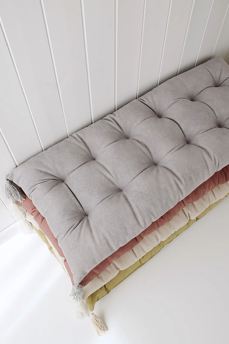 Le coussin pour balançoire Montessori S assure un confort maximal lors de la balançoire, du jeu et du repos. Il est conçu sur mesure pour la balançoire de taille S, ce qui lui permet de s'adapter parfaitement et de ne pas glisser. Il crée un espace doux et agréable pour la lecture, la détente et les moments de calme pendant la journée. Le rembourrage en billes de silicone anti-allergiques offre un soutien optimal et conserve sa forme même après une utilisation prolongée. La couleur grise neutre se marie facilement avec les balançoires en bois naturel ou blanc. Les franges en coton ajoutent une touche douce et stylée au coussin. Les matériaux utilisés sont certifiés OEKO-TEX et sont sûrs même pour les tout-petits.