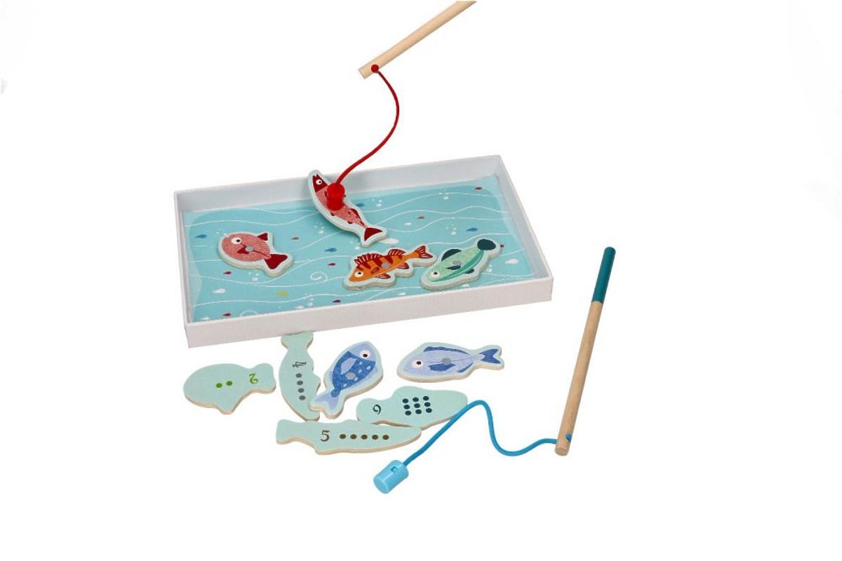 Lancez les cannes à pêche et attrapez-les tous, et après une pêche réussie, comptez les points. Grâce au fait que chaque poisson a un nombre différent de points à l'arrière et un numéro correspondant, l'enfant peut également apprendre à compter. Qualité garantie, jouet fabriqué avec la plus grande précision par la marque Adam Toys.