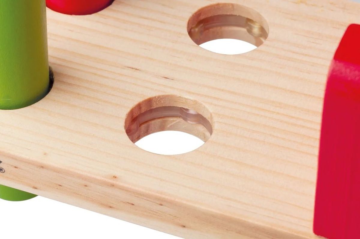 Ce jouet est un rêve devenu réalité pour de nombreux garçons et filles - vous pouvez taper et marteler avec un marteau spécial autant que vous le souhaitez ! Et le meilleur, c'est que personne ne vous dira d'arrêter ou que ce n'est pas possible. Ici, il est recommandé de frapper avec force les chevilles en bois spécialement fixées à l'aide du marteau fourni. C'est certainement une raison suffisante pour que ce jouet devienne le favori de votre enfant.
