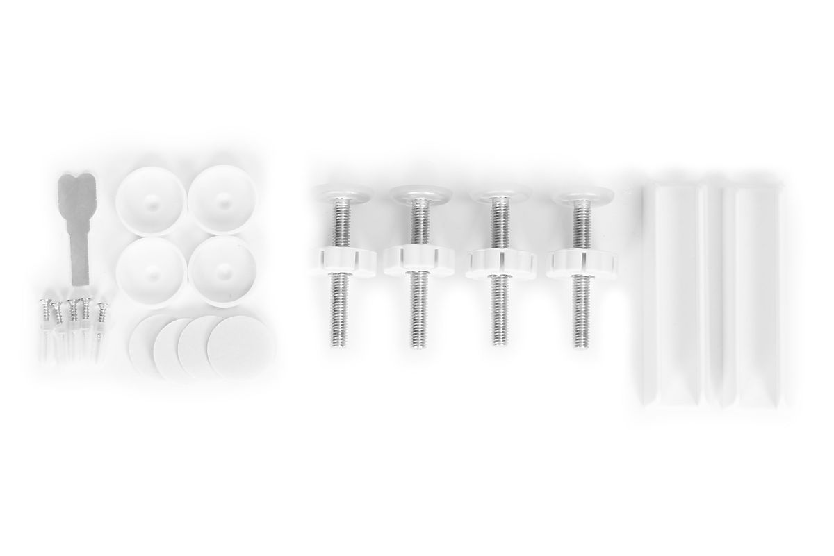 Cependant, si vous considérez que l'emplacement nécessite une fixation permanente, vous pouvez utiliser les coussinets profilés spéciaux avec un petit trou au centre. En les fixant au mur (vis incluses) à l'endroit désigné, vous pouvez insérer les vis qui fixeront la barrière selon le principe de l'expansion de toute la structure.