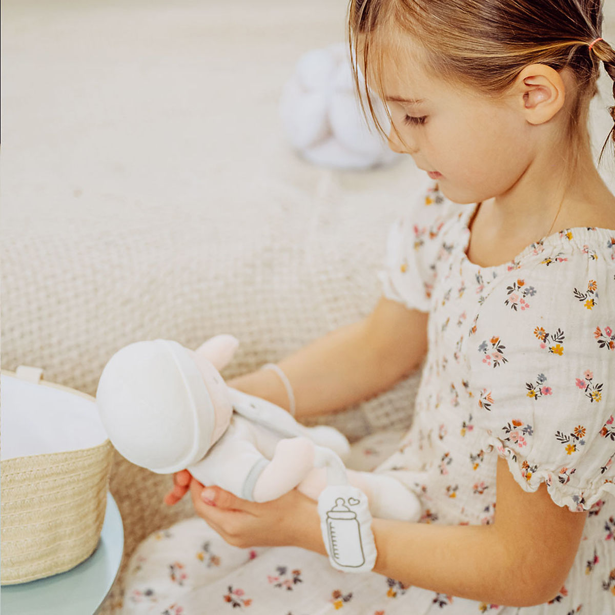 Poupée Pol dans un sac portable pour poussette comme un vrai bébé ! Cette poupée avec bonnet et chaussettes est douce et moelleuse pour toutes les petites mains. Pol porte une tenue blanc-gris qui peut être enlevée et remise, et tient son petit biberon dans la main. Grâce au sac de poussette portable, la poupée Pol est une excellente compagne non seulement à la maison, mais aussi pour une sortie au parc ou chez des amis. Avec cette poupée, des heures de jeu sont garanties. Entretien : Lavez dans un bain à 30°. Recommandation : Séchage naturel ou à basse température. Le jouet répond aux normes de sécurité européennes CE. Principales caractéristiques : convient dès la naissance, visage, yeux et bouche brodés, doux bébé avec accessoires