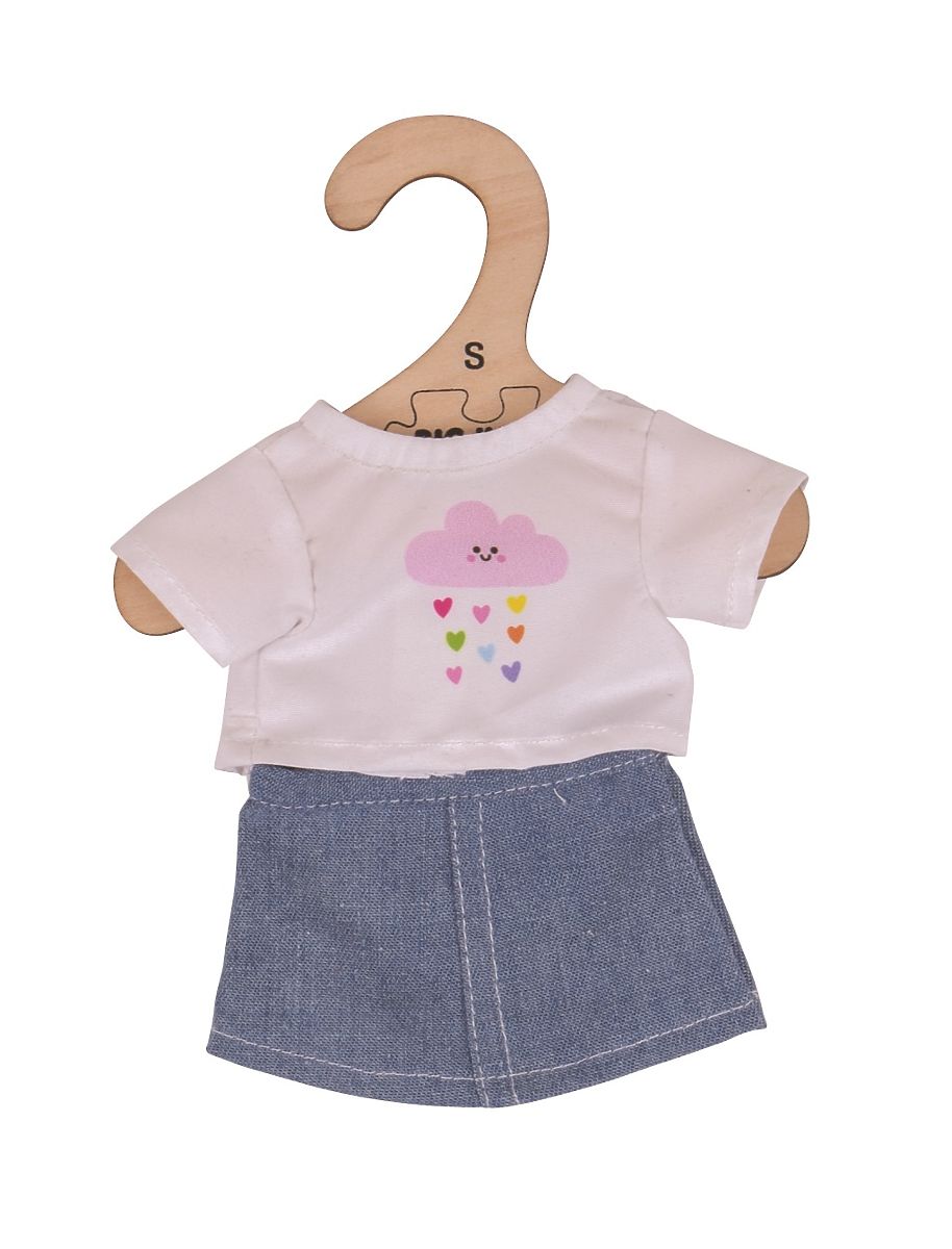 Banaby.fr » Jouets / Poussettes pour poupées et accessoires / Bigjigs Toys T-shirt blanc avec jupe en jean pour poupée 28cm