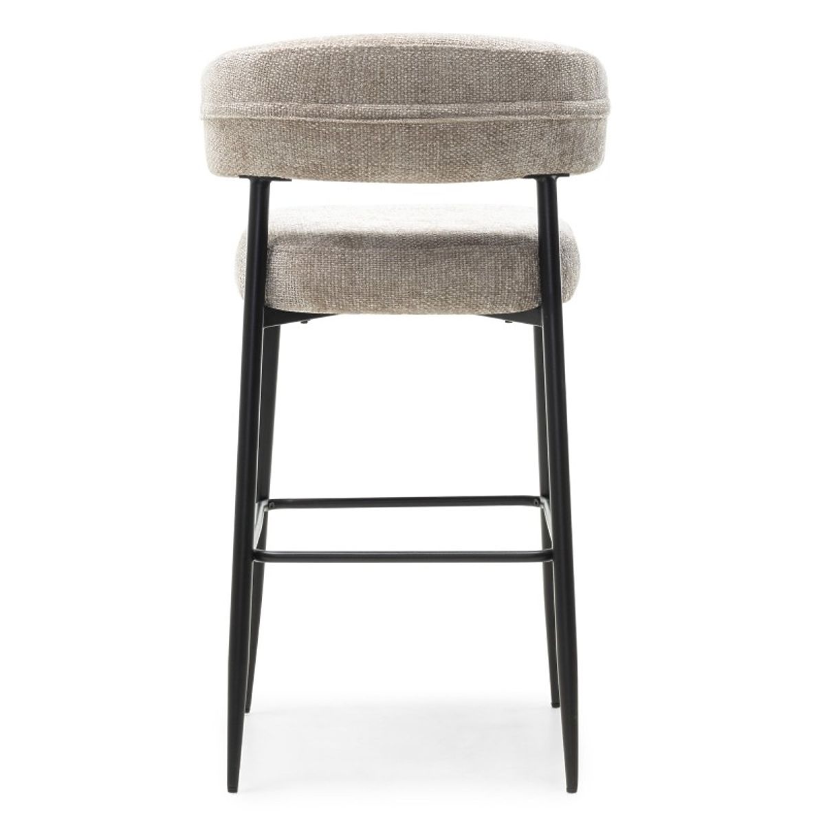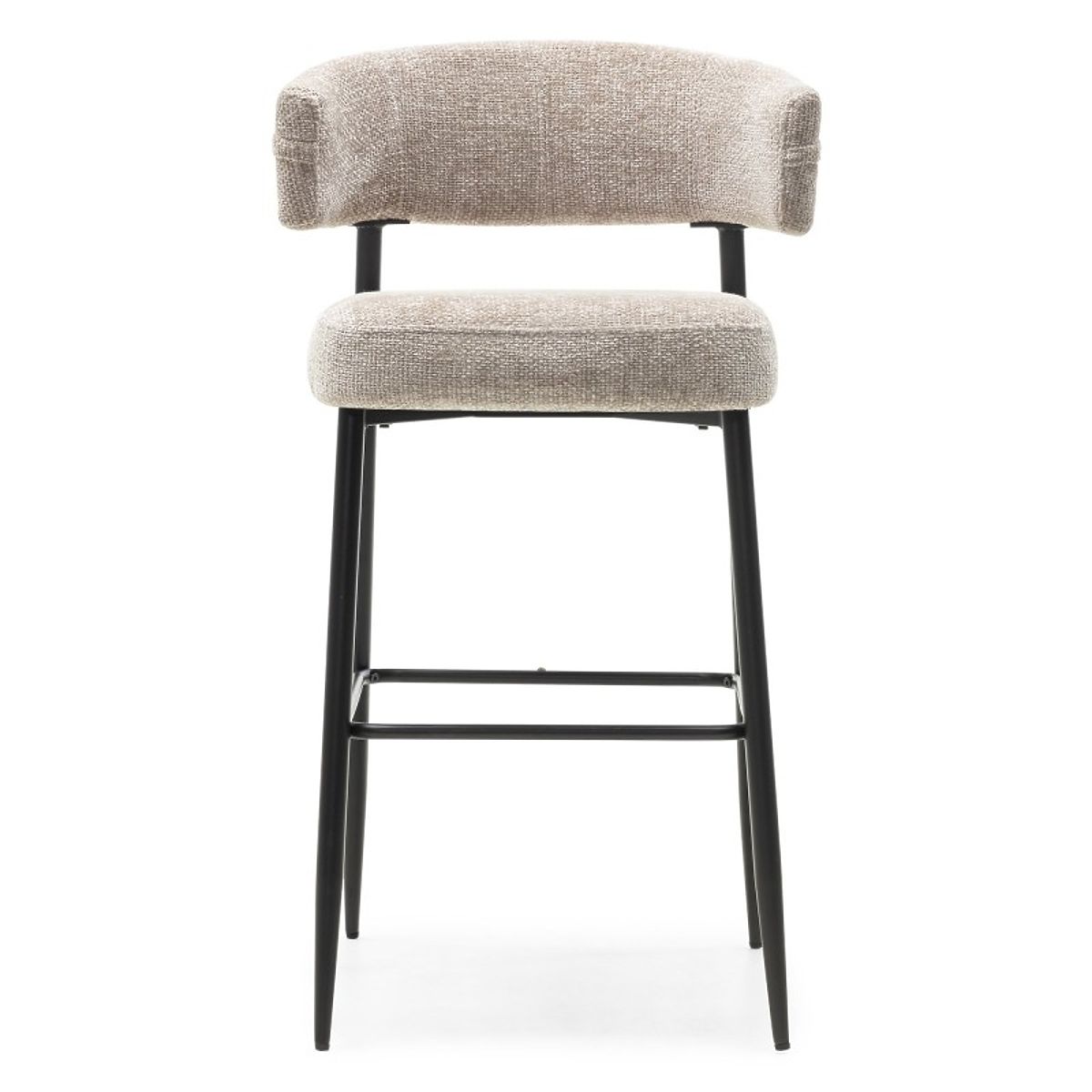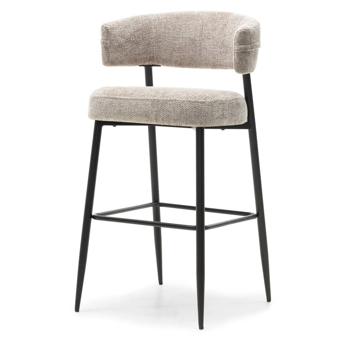 Chaise de bar moderne avec revêtement beige et pieds noirs. .. plus