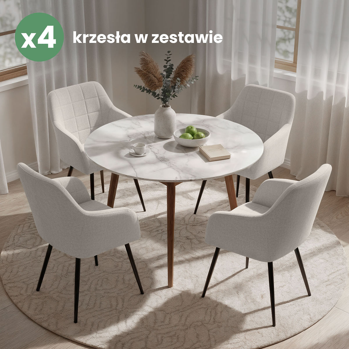 Banaby.fr » Meubles / Salle à manger / Chaises de salle à manger / 4x Chaise rembourrée avec surpiqûres carrées Crème LUXANO Pieds noirs tissu Lumos