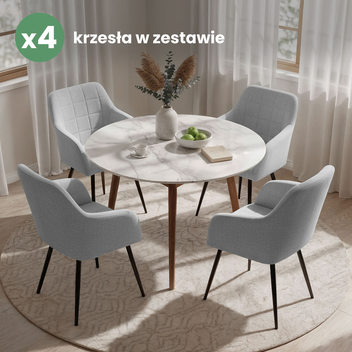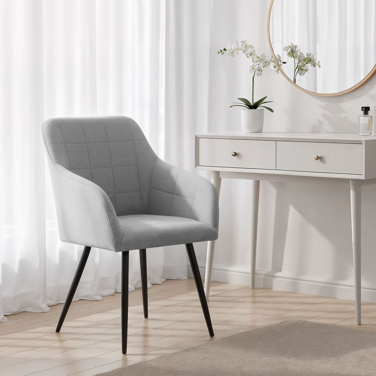 Banaby.fr » Meubles / Salle à manger / Chaises de salle à manger / 4x Chaise rembourrée avec surpiqûres carrées Gris Clair LUXANO Pieds noirs tissu Lumos