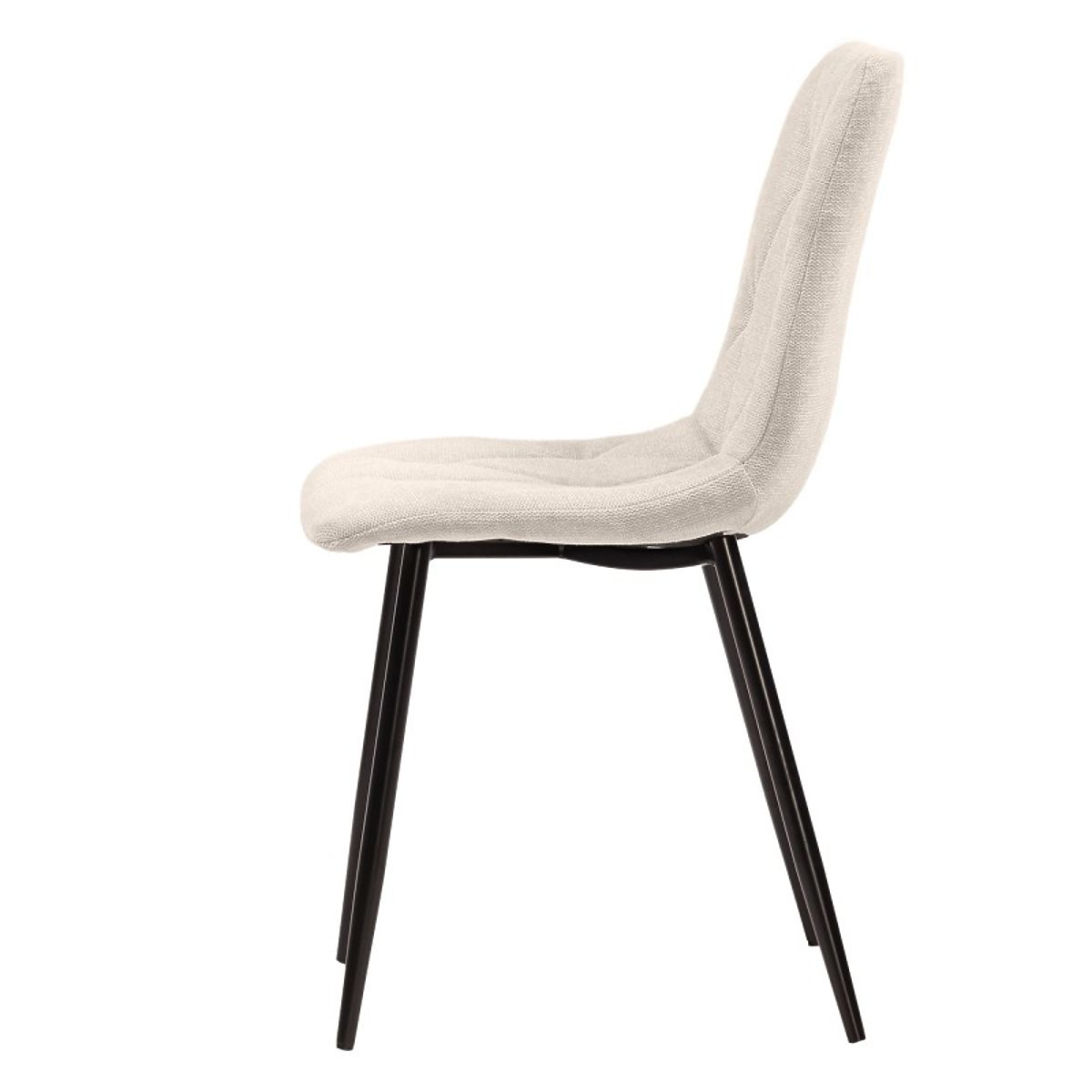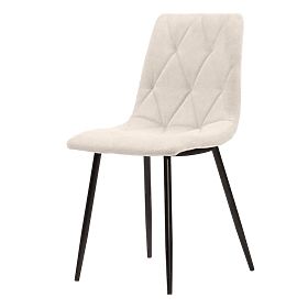 Chaise élégante sans accoudoirs avec siège beige et pieds noirs en métal. .. plus