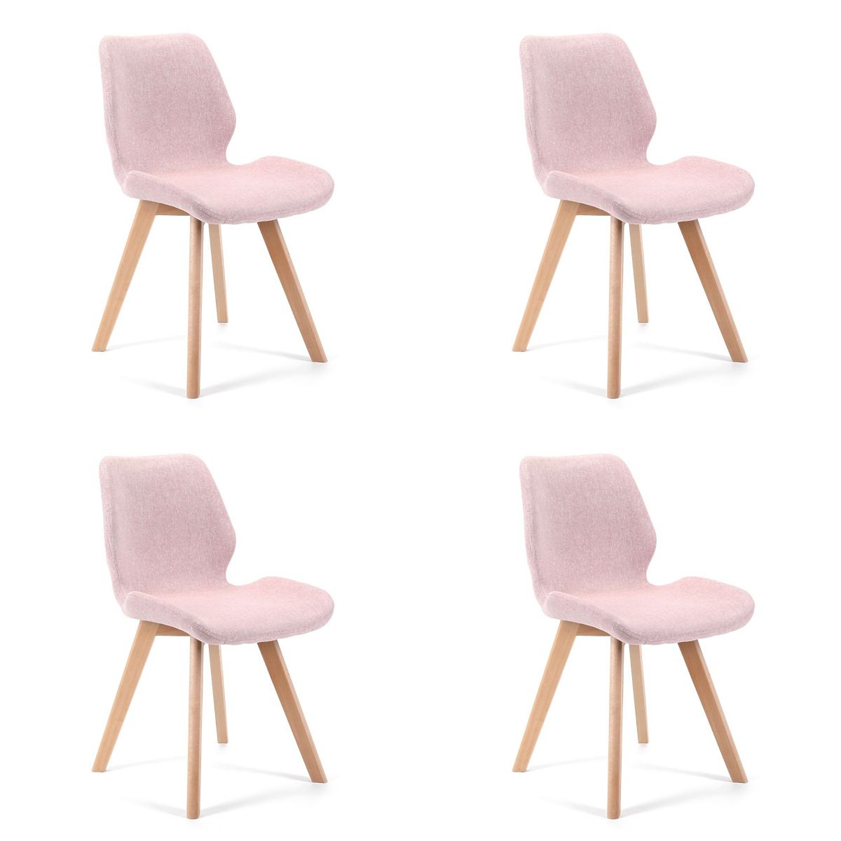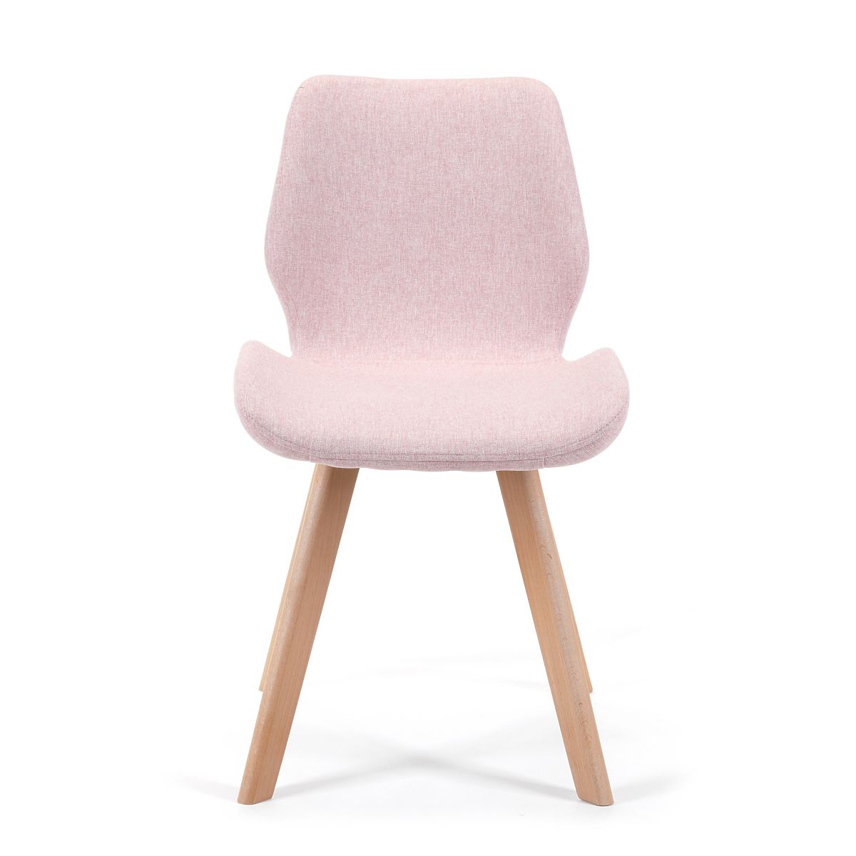 Chaise scandinave rose avec pieds en bois et tissu confortable. .. plus