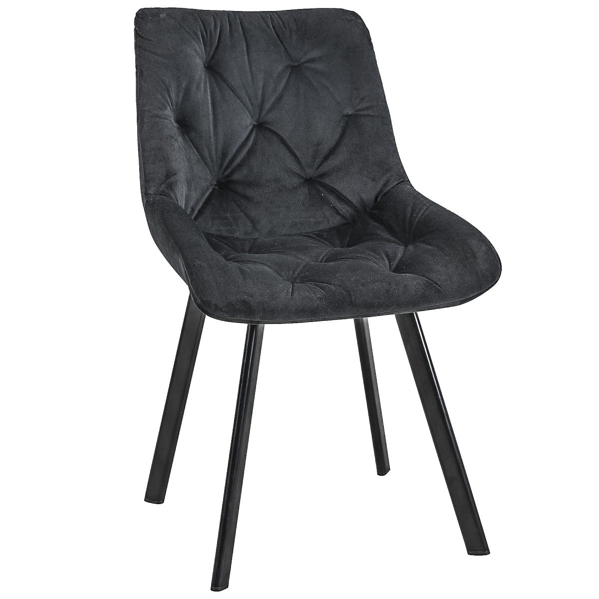 Chaise en velours noir avec pieds métalliques, idéale pour intérieurs modernes. .. plus