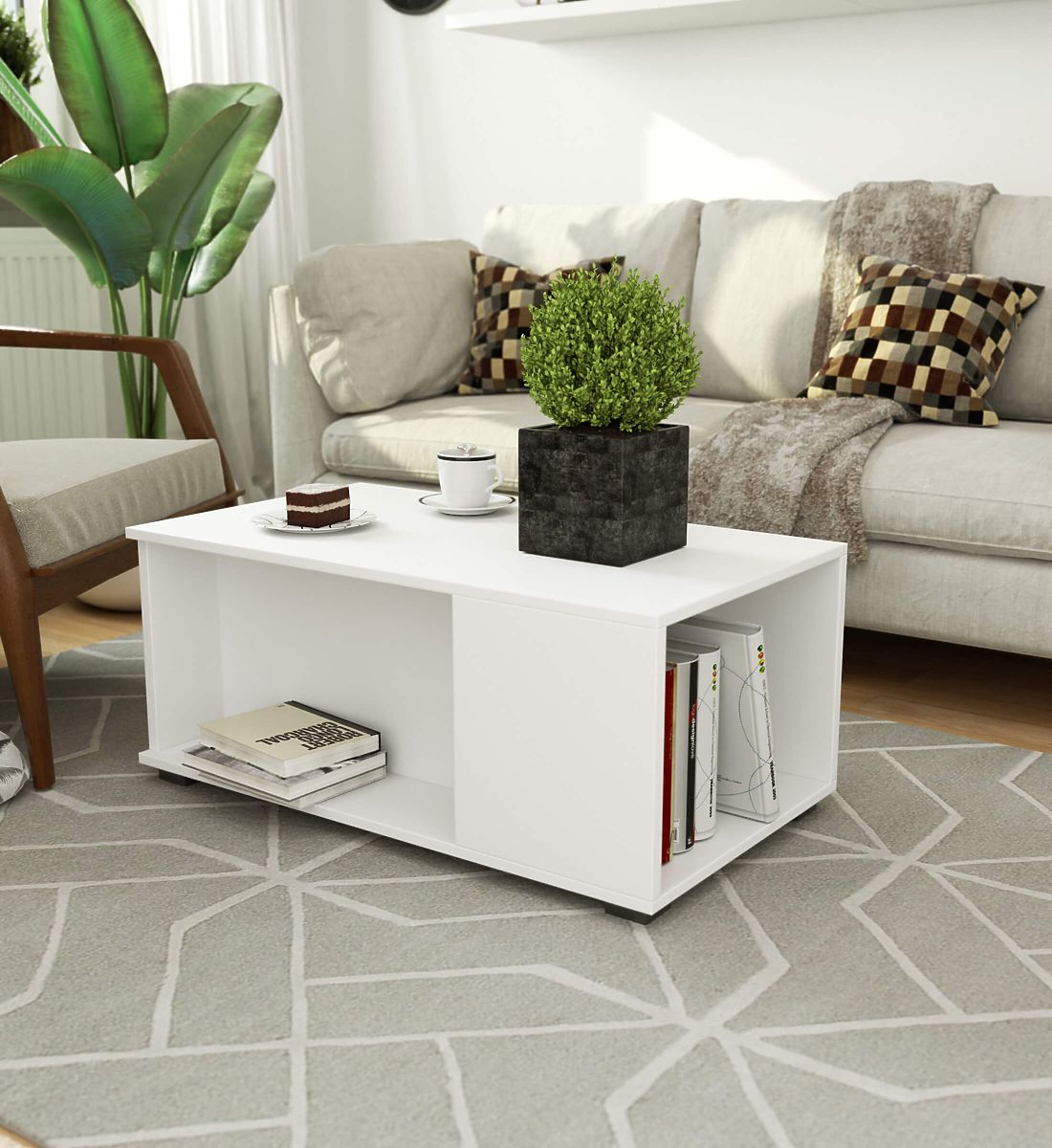 Table basse blanche en panneau laminé résistant à l'usure. .. plus