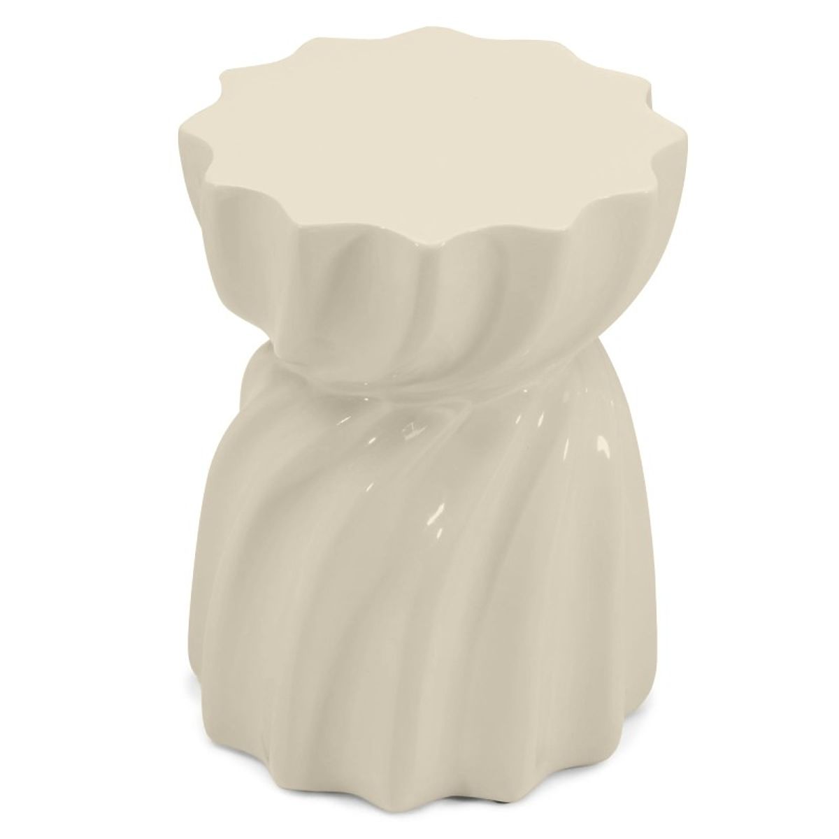 Table d'appoint ondulée en beige brillant, structure unique. .. plus