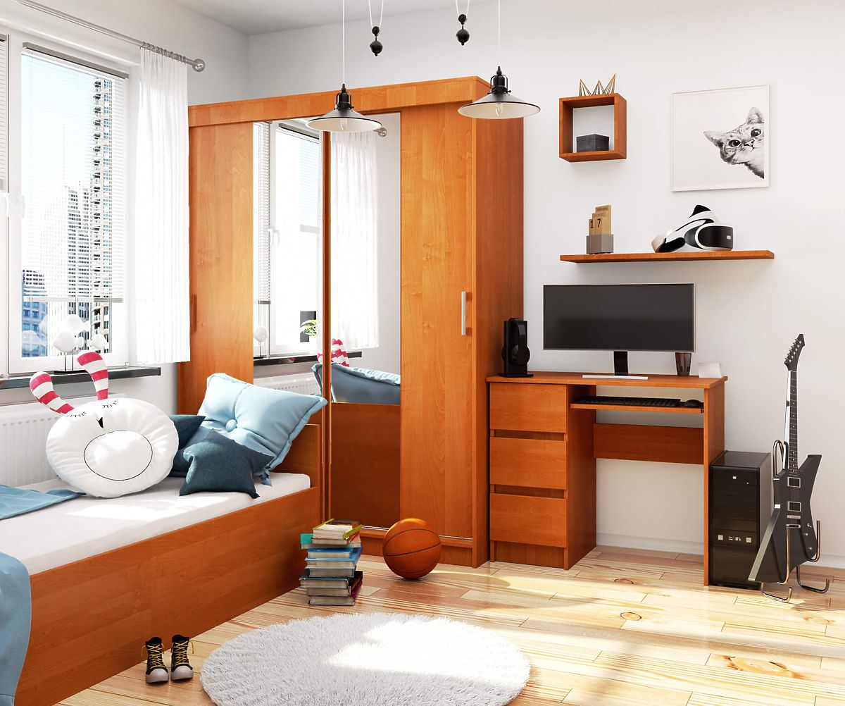 Le bureau présenté est fabriqué en bois d'aulne de haute qualité et en panneau laminé résistant à l'abrasion. Il est conçu pour un assemblage autonome, le manuel fourni explique simplement et en détail comment le monter. Le bureau est extrêmement confortable à utiliser et assure un confort lors du travail ou des études. Il offre beaucoup d'espace de rangement, c'est-à-dire trois tiroirs et une étagère coulissante pour le clavier d'ordinateur - ils se déplacent grâce à des guides à rouleaux métalliques, assurant un mouvement léger et fluide. Les façades des tiroirs sont fabriquées en panneau laminé. Les bords visibles sont dotés d'un chant ABS, garantissant une haute résistance aux dommages.