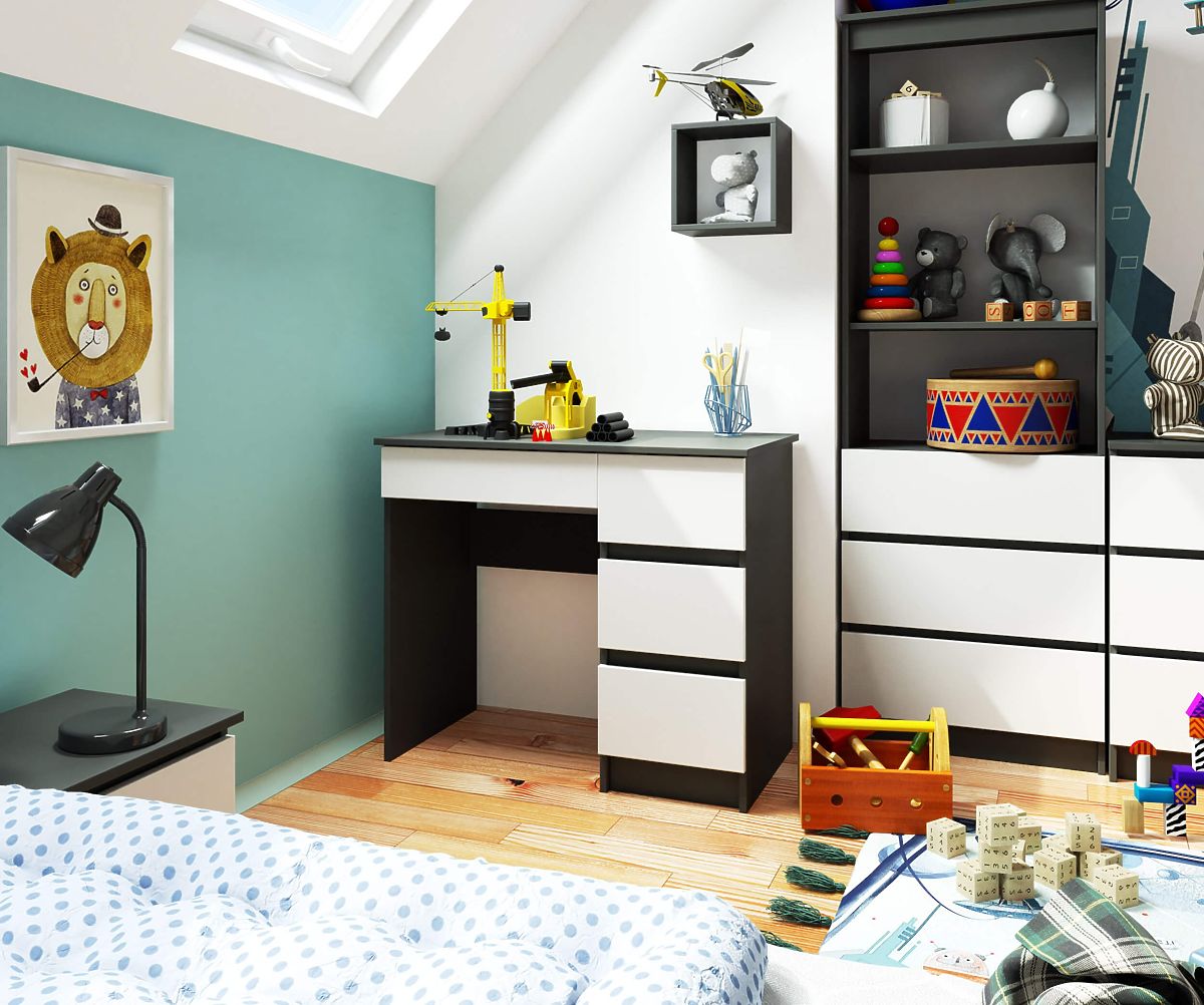 Bureau avec quatre tiroirs destiné aux jeunes.