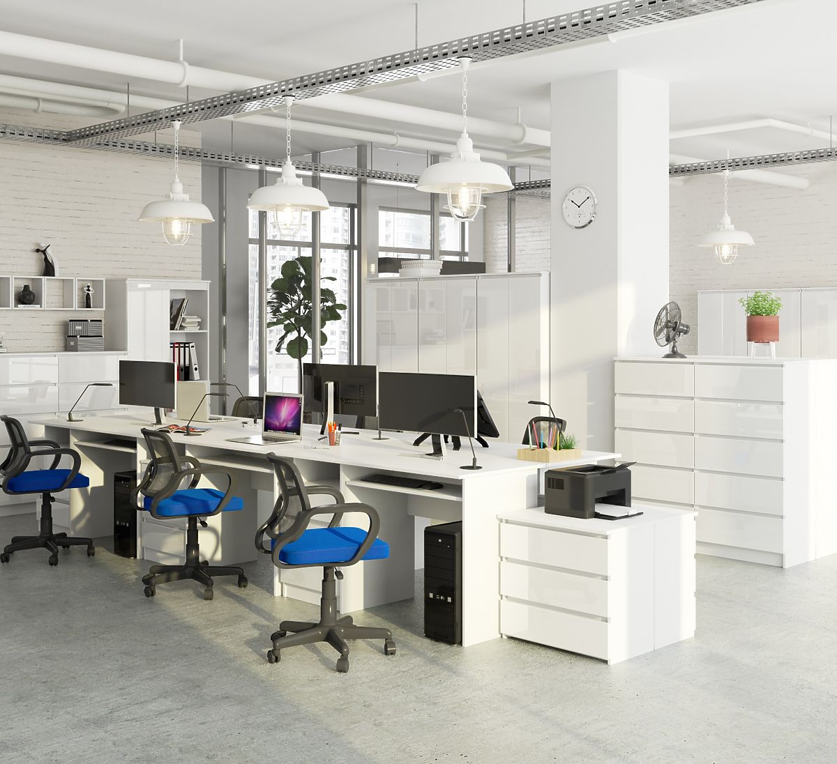 Bureau CLP blanc avec surface de travail spacieuse et tiroirs pratiques. .. plus