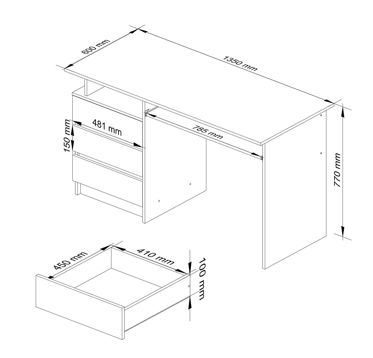 • Largeur du tiroir : 41 cm