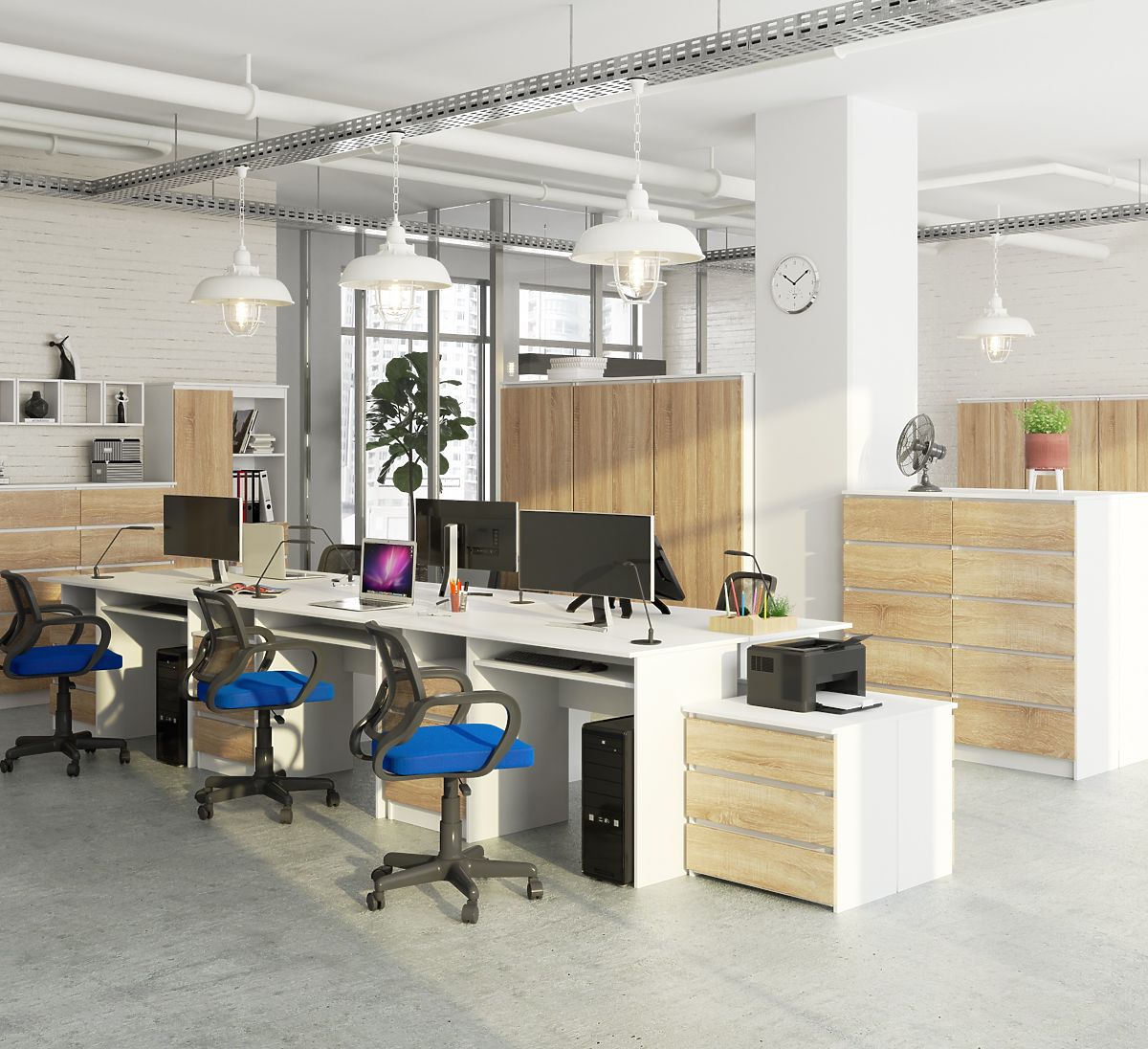 Bureau en panneau laminé blanc et chêne sonoma de 135 cm. .. plus