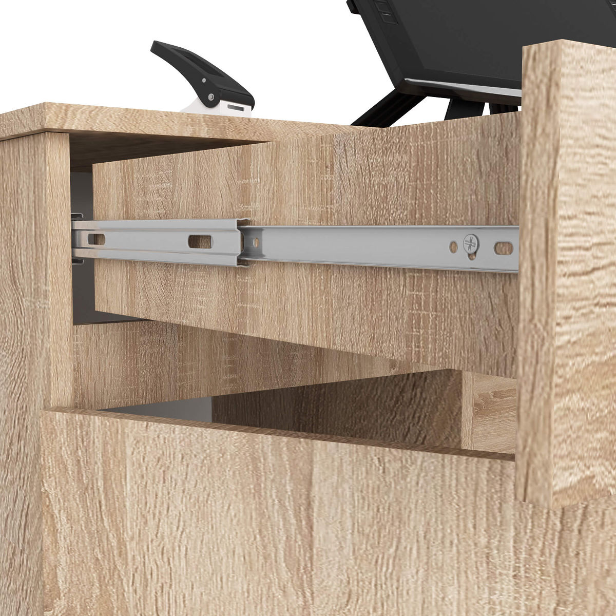 Bureau informatique fonctionnel en chêne sonoma avec tiroirs et étagère pour clavier. .. plus