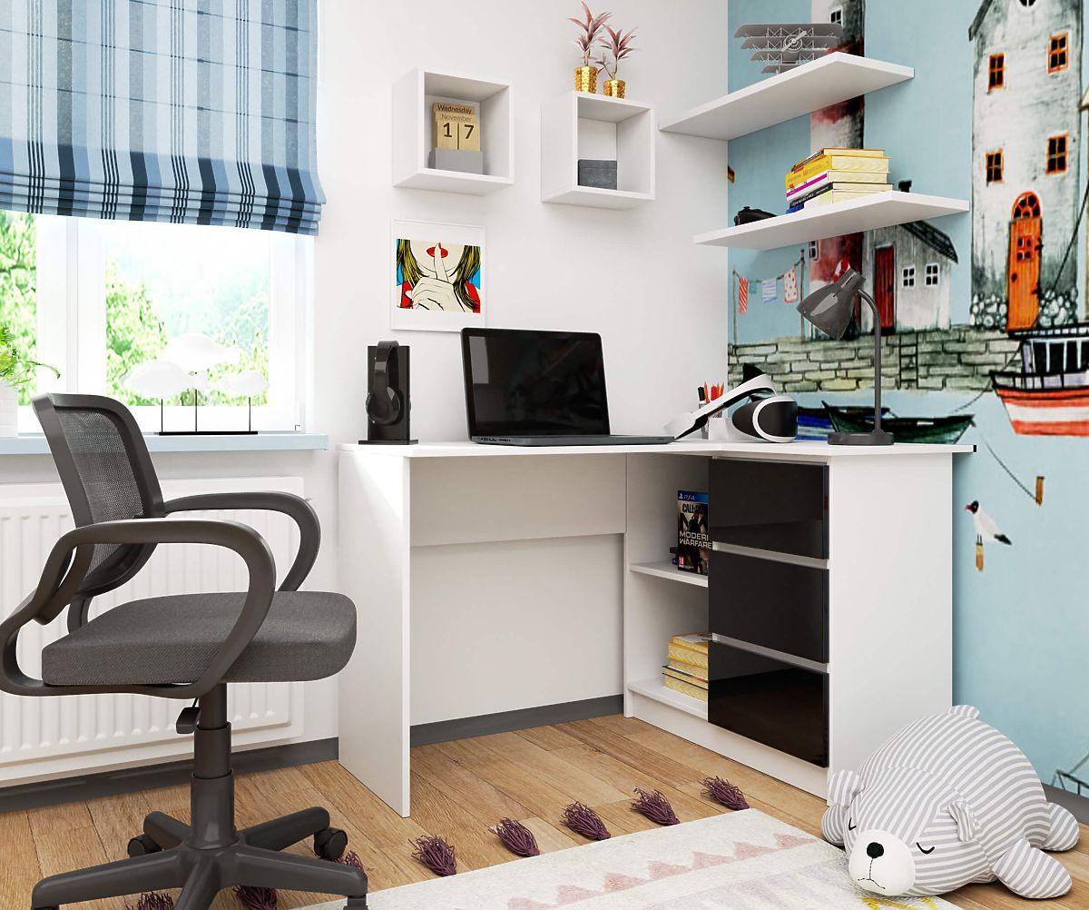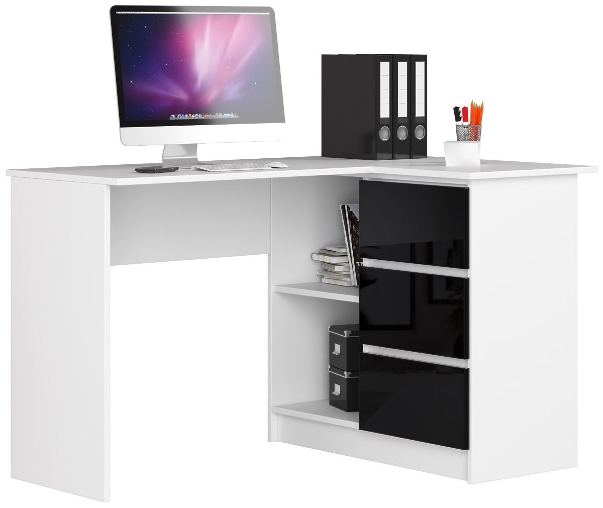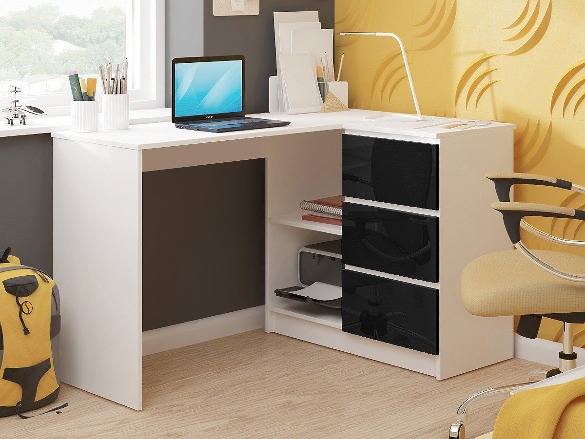 Banaby.fr » Meubles pour enfants / Tables enfant / Bureaux enfant / BUREAU D'ANGLE B16 124 cm DROIT 3 TIROIRS PK BLANC / NOIR BRILLANT
