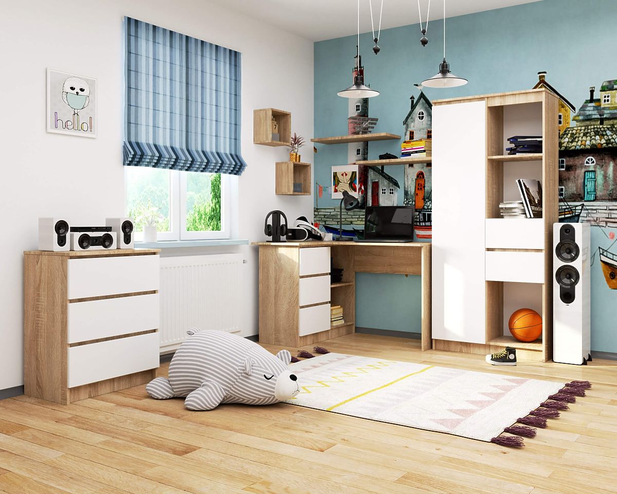 Banaby.fr » Meubles pour enfants / Tables enfant / Bureaux enfant / BUREAU D'ANGLE B16 124 cm GAUCHE 3 TIROIRS CHÊNE SONOMA / BLANC