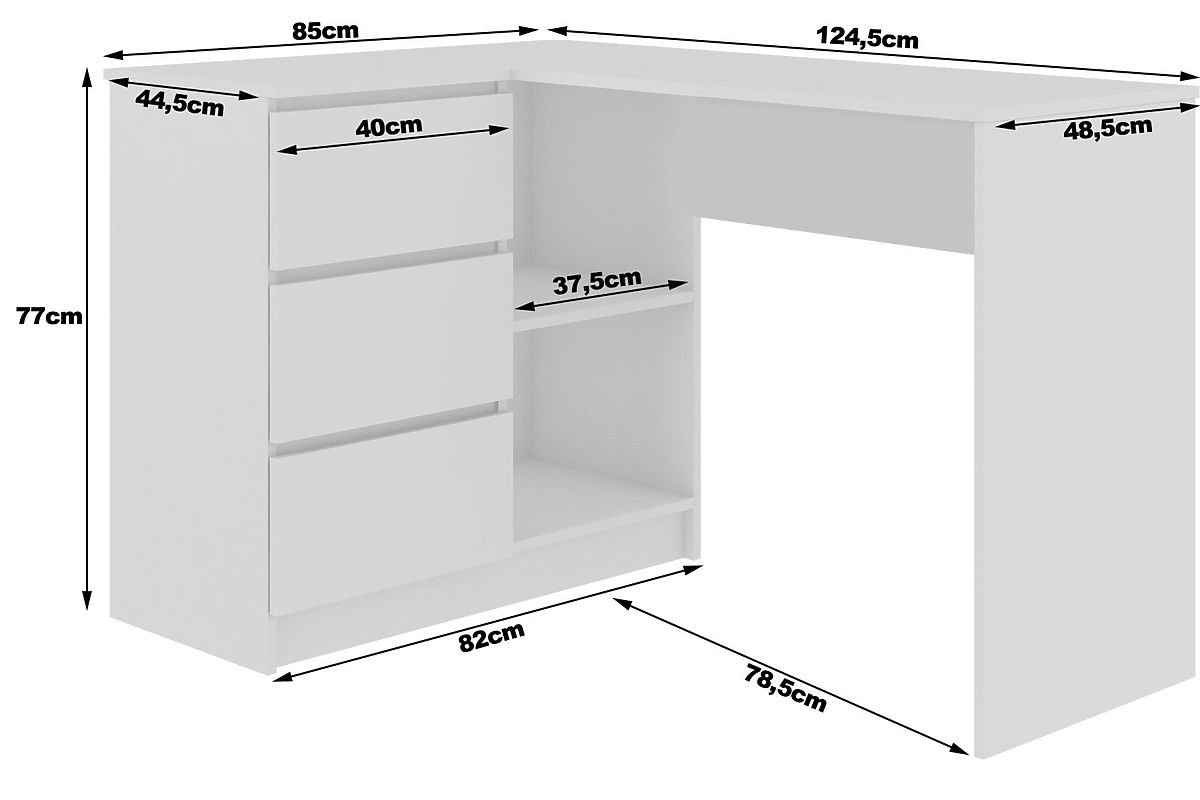 Banaby.fr » Meubles pour enfants / Tables enfant / Bureaux enfant / BUREAU D'ANGLE B16 124 cm GAUCHE 3 TIROIRS PK BLANC / SONOMA