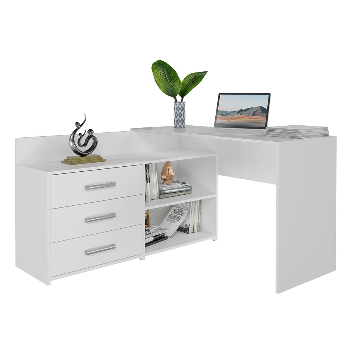 Le grand bureau d'angle avec 3 tiroirs est un meuble idéal pour le bureau ou la maison, où nous avons besoin d'un espace pour travailler ou étudier.
