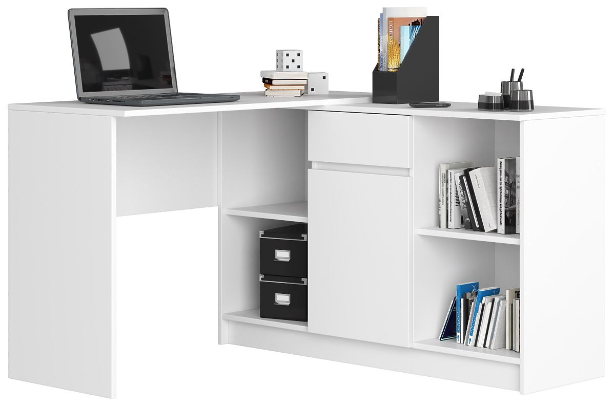 Nous sommes une boutique en ligne offrant du mobilier de bureau de qualité, caractérisé par sa durabilité et son caractère universel. Nos prix méritent également votre attention. Le bureau avec commode est fabriqué en panneau stratifié de 16 millimètres d'épaisseur. Ce panneau se distingue par sa bonne résistance à l'abrasion. Le mobilier comprend, entre autres, des étagères pratiques qui peuvent facilement accueillir tous les classeurs, et des tiroirs sur glissières à billes métalliques. Les bords sont dotés d'un chant ABS assurant une haute résistance aux dommages.