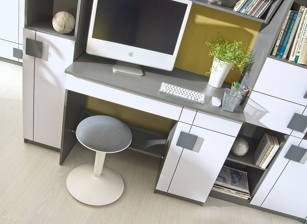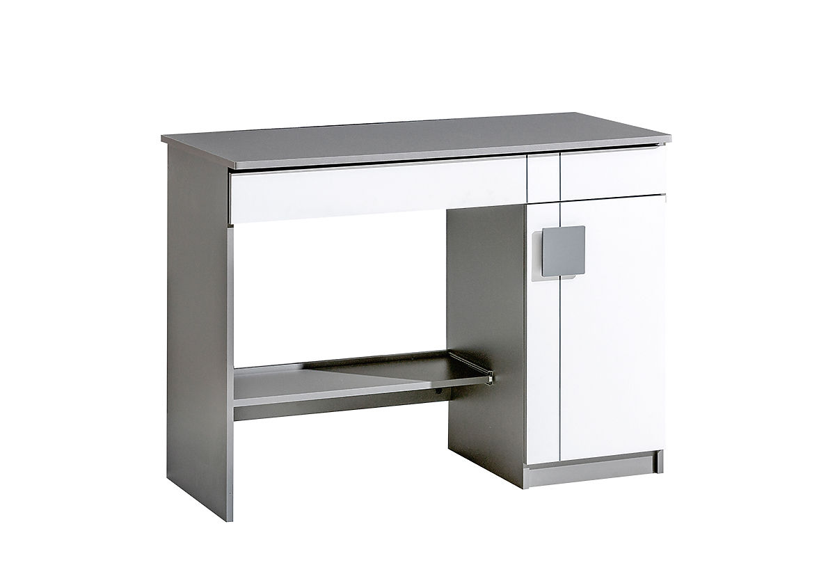 Le bureau moderne Gumi en stratifié convient aux chambres d'enfants pour garçons et filles. La combinaison de couleurs du blanc et du gris anthracite est moderne. Il y a un tiroir allongé sous le dessus de la table.