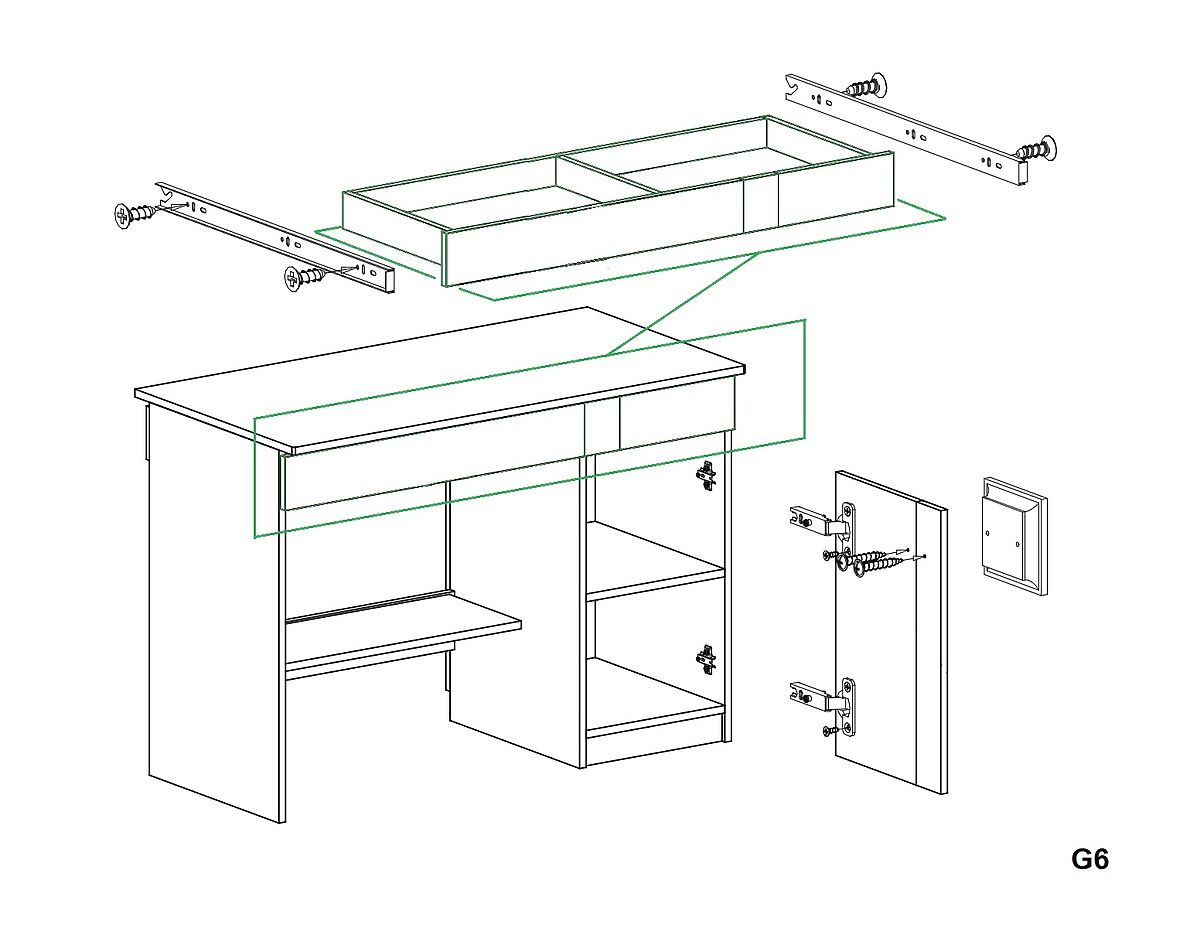 Un espace de stockage supplémentaire est derrière la porte avec une poignée. Il y a une étagère à l'intérieur de l'armoire. Au bas de la table se trouve une étagère aérée que les enfants peuvent remplir à leur discrétion.