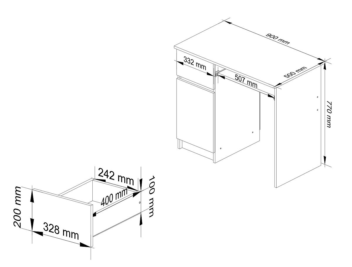 Le bureau Pixel est un petit bureau offrant suffisamment d'espace pour les fournitures scolaires essentielles. Grâce à ses portes, il peut contenir de nombreux cahiers et livres. Le bureau mesure 90 cm de long et convient parfaitement aux petites et moyennes pièces.