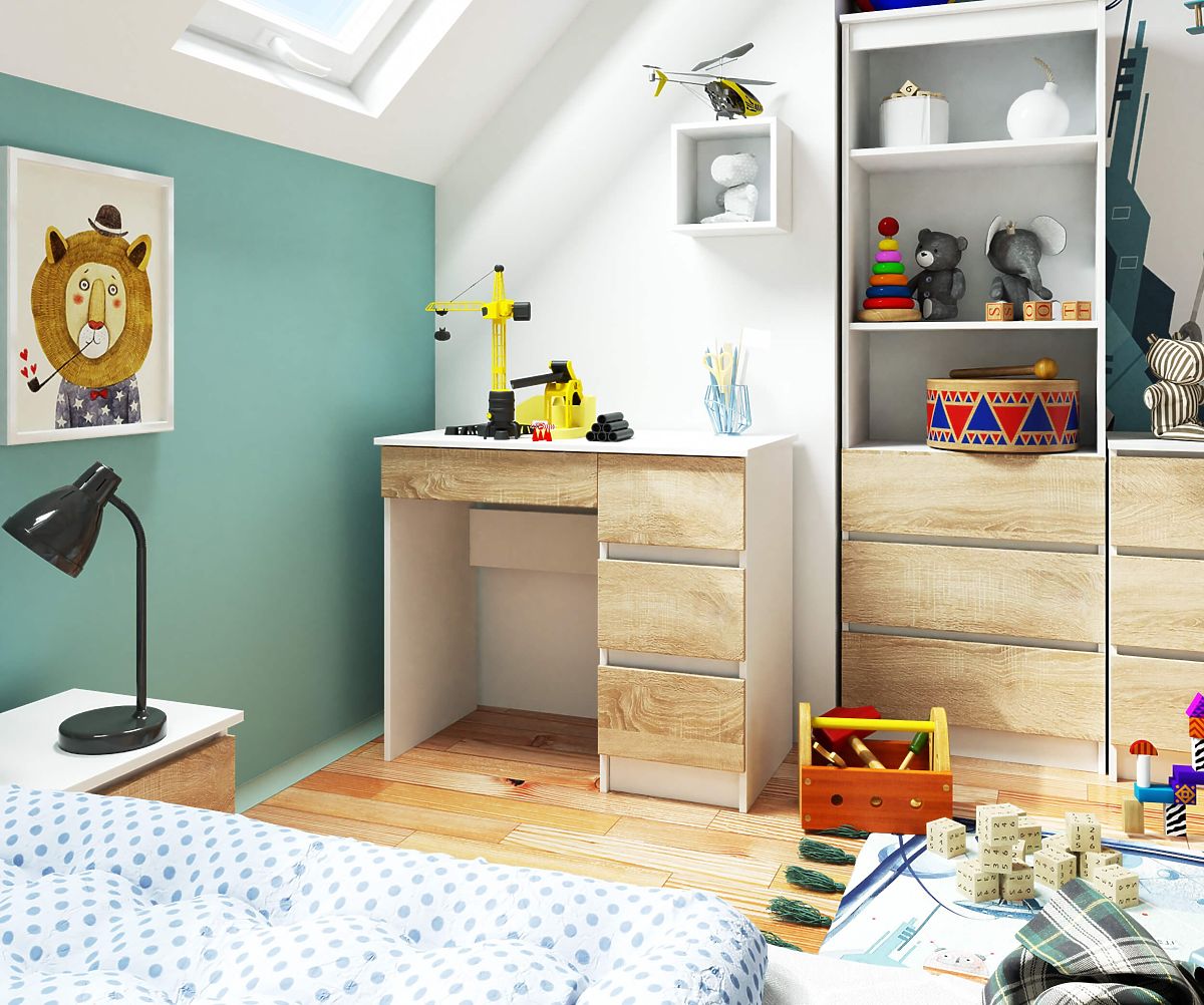 Bureau avec quatre tiroirs destiné aux jeunes.