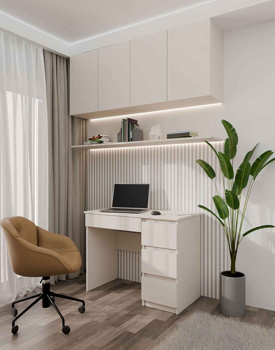 Le bureau Mijas Droit avec 4 tiroirs est idéal pour les chambres à domicile et les bureaux.