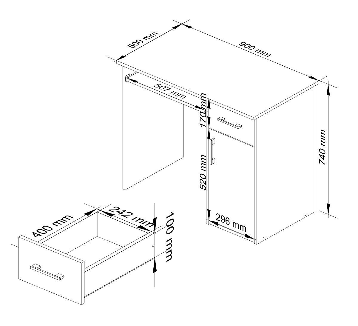 Une combinaison de classicisme et de modernité dans sa meilleure réalisation - c'est ainsi que l'on peut décrire le bureau informatique PIN de 90 centimètres de long. C'est un choix parfait pour les petits espaces où il est nécessaire de créer un coin pour travailler sur l'ordinateur. Le meuble est fabriqué en panneau laminé (épaisseur de 16 millimètres), résistant à l'abrasion et durable. Les bords visibles du bureau sont bordés d'un chant ABS, qui se distingue par une résistance accrue aux dommages. De plus, l'arrière du bureau est équipé d'un panneau laminé, ce qui permet son placement libre dans la pièce ou le bureau. Les dimensions du bureau sont de 90 cm x 74 cm x 50 cm. Le prix du produit, qui se distingue par sa fonctionnalité et son apparence universelle, mérite également l'attention. Le bureau se compose d'un plateau, d'un tiroir, d'un placard et d'une étagère coulissante pour le clavier. L'offre présentée sera appréciée tant par les personnes qui apprécient les intérieurs conçus de manière classique que par les amateurs d'aménagements modernes.