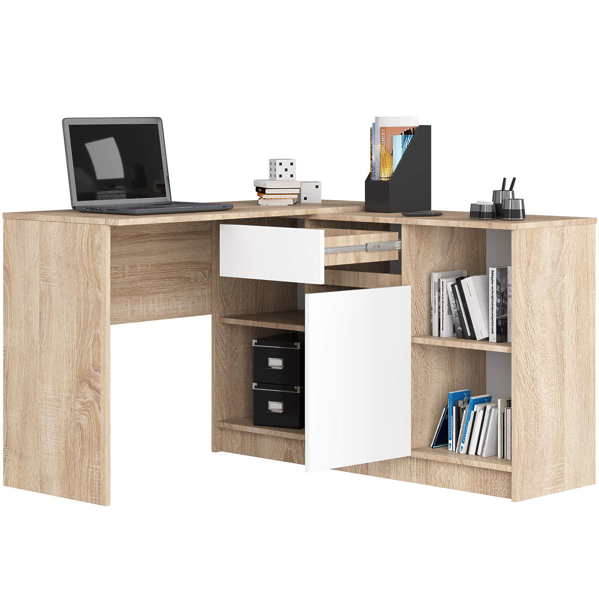 Bureau d'angle fonctionnel avec commode intégrée. .. plus