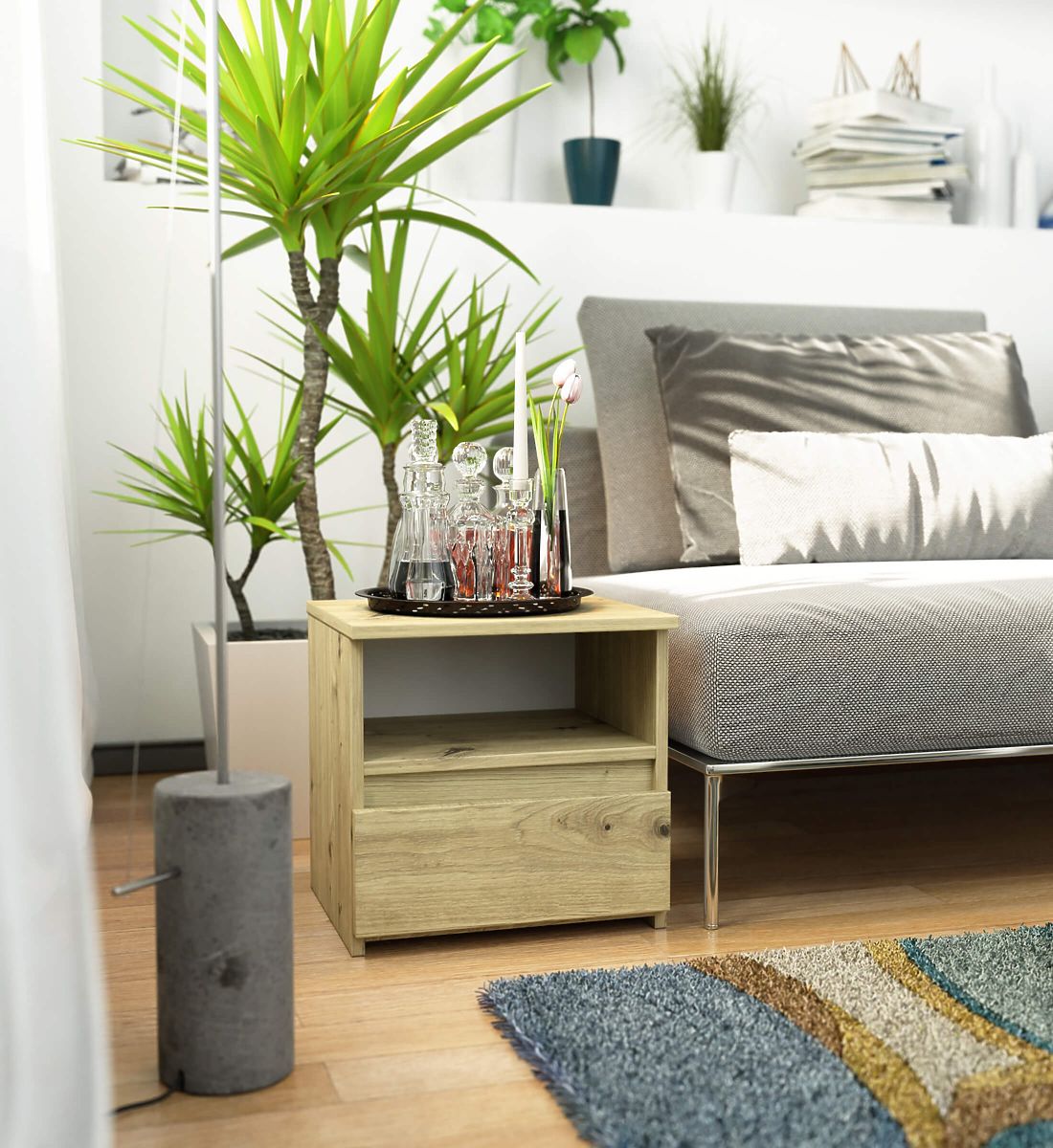Les tables de chevet sont un type de mobilier populaire placé à côté du lit. Sur son plateau se trouve généralement une lampe, tandis qu'à l'intérieur se trouvent des objets facilitant le repos et le sommeil. Les personnes à la recherche d'une commode élégante devraient prêter attention à la table de chevet CL1 de 40 cm en couleur chêne artisan. Elle s'intégrera parfaitement dans toute chambre à coucher. Elle peut également être placée dans une chambre d'enfant.