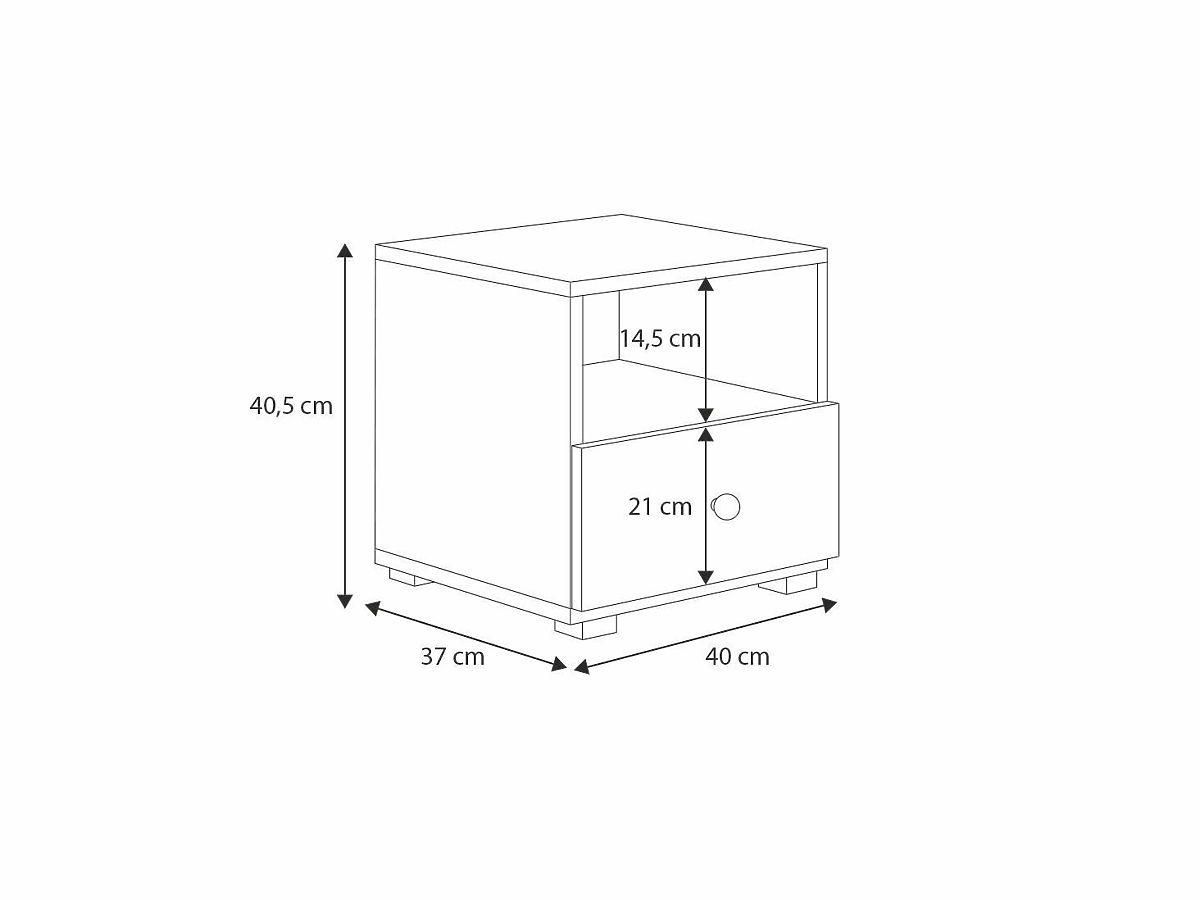La table de nuit EMI a été conçue en tenant compte du confort et de la fonctionnalité. Elle est équipée d'un tiroir pratique qui permet de ranger de petits objets tels que des livres, des jouets ou des accessoires, ce qui aide à maintenir l'ordre. Sa structure solide en panneau de meuble laminé assure durabilité et résistance à l'utilisation quotidienne. Un autre avantage est la possibilité de choisir la poignée colorée, ce qui permet d'adapter la table au style de la chambre et apporte un élément de personnalisation que les enfants adorent.
