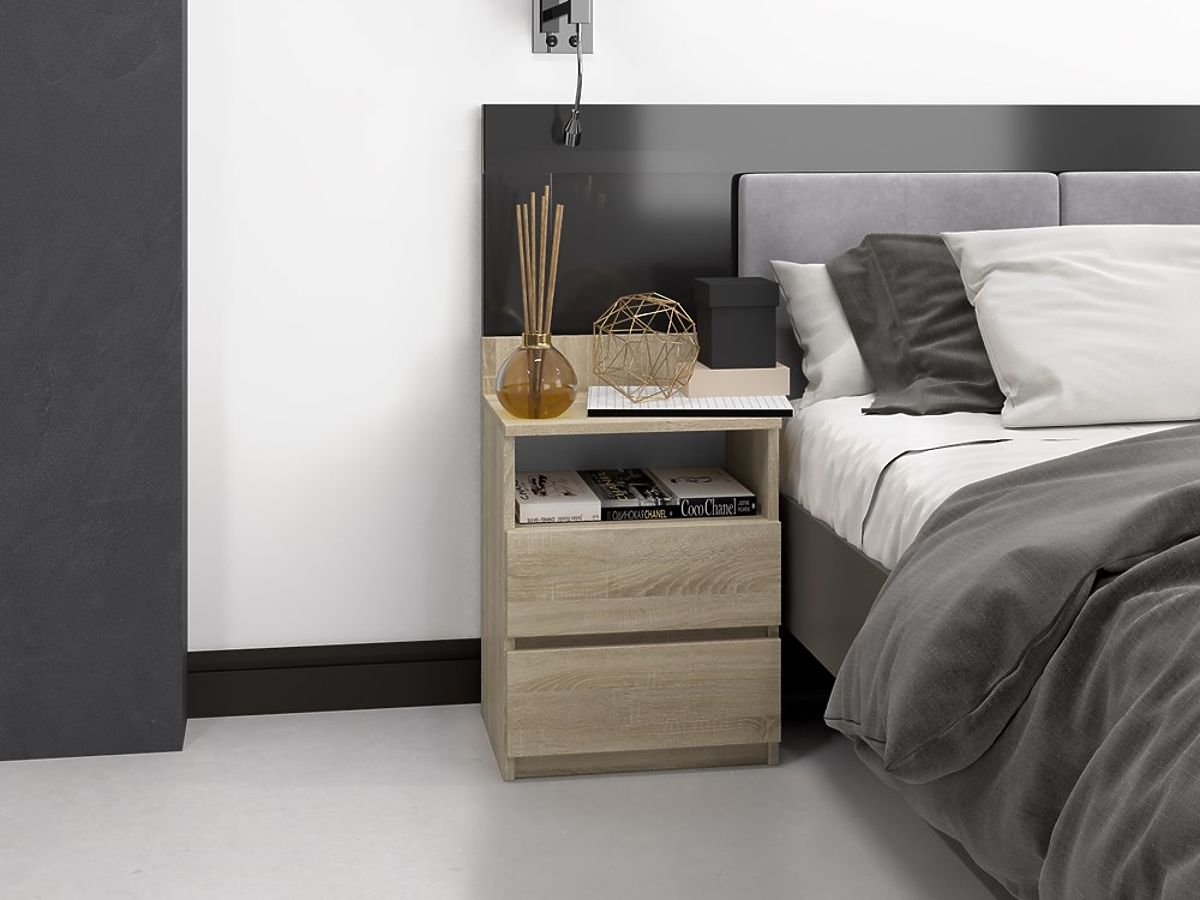 Table de nuit moderne avec deux tiroirs en chêne Sonoma. .. plus