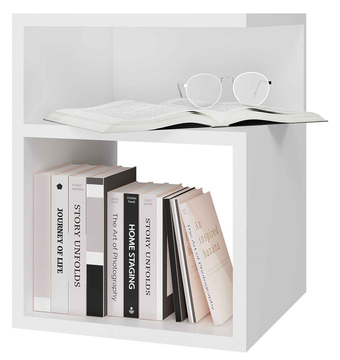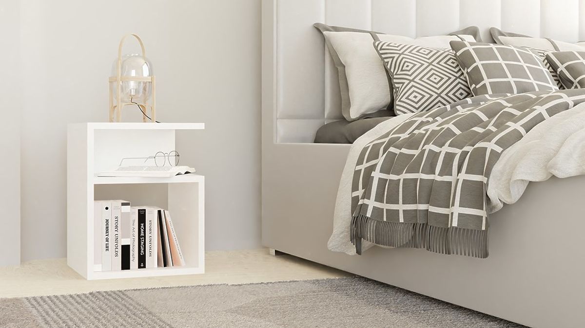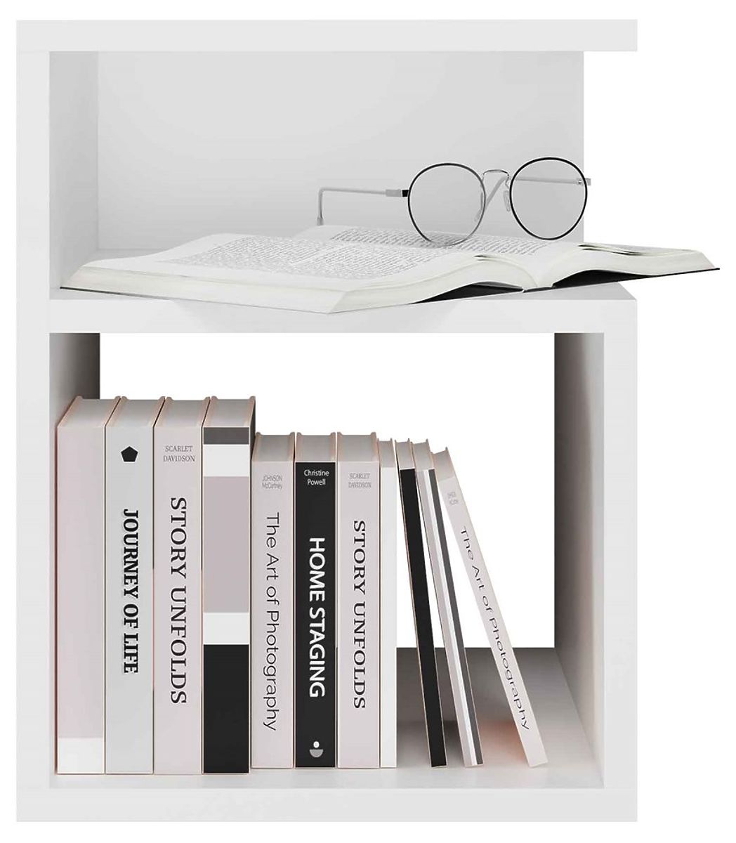 Table de nuit moderne en blanc avec design minimaliste. .. plus