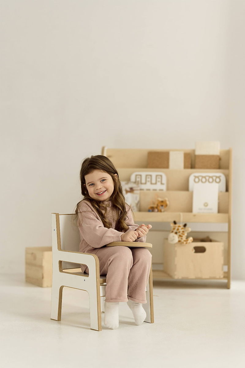 La chaise en bois pour enfant convient aux enfants de différents âges – elle est utile aussi bien pour un enfant d'un an qui découvre le monde que pour un enfant d'âge préscolaire plus âgé et créatif. Elle offre un bon soutien du dos tout en assurant une assise confortable pour jouer, dessiner ou manger. Elle est également très pratique dans la cuisine ou la salle de bain – l'enfant peut se tenir debout sur le siège et atteindre facilement le plan de travail ou le lavabo. Toutes les arêtes sont soigneusement arrondies pour garantir une sécurité maximale aux petits utilisateurs.