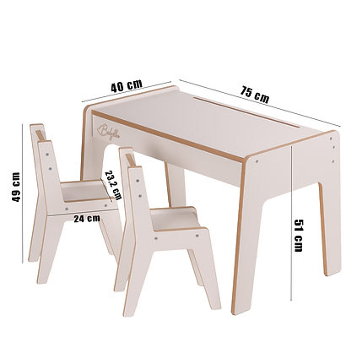 L'ensemble est conçu pour être sûr, stable et en même temps agréable à utiliser. Grâce aux bords arrondis et à une construction solide, vous n'avez pas à craindre les blessures, et la large surface de travail de la table offre suffisamment d'espace pour dessiner, écrire ou construire des maquettes.