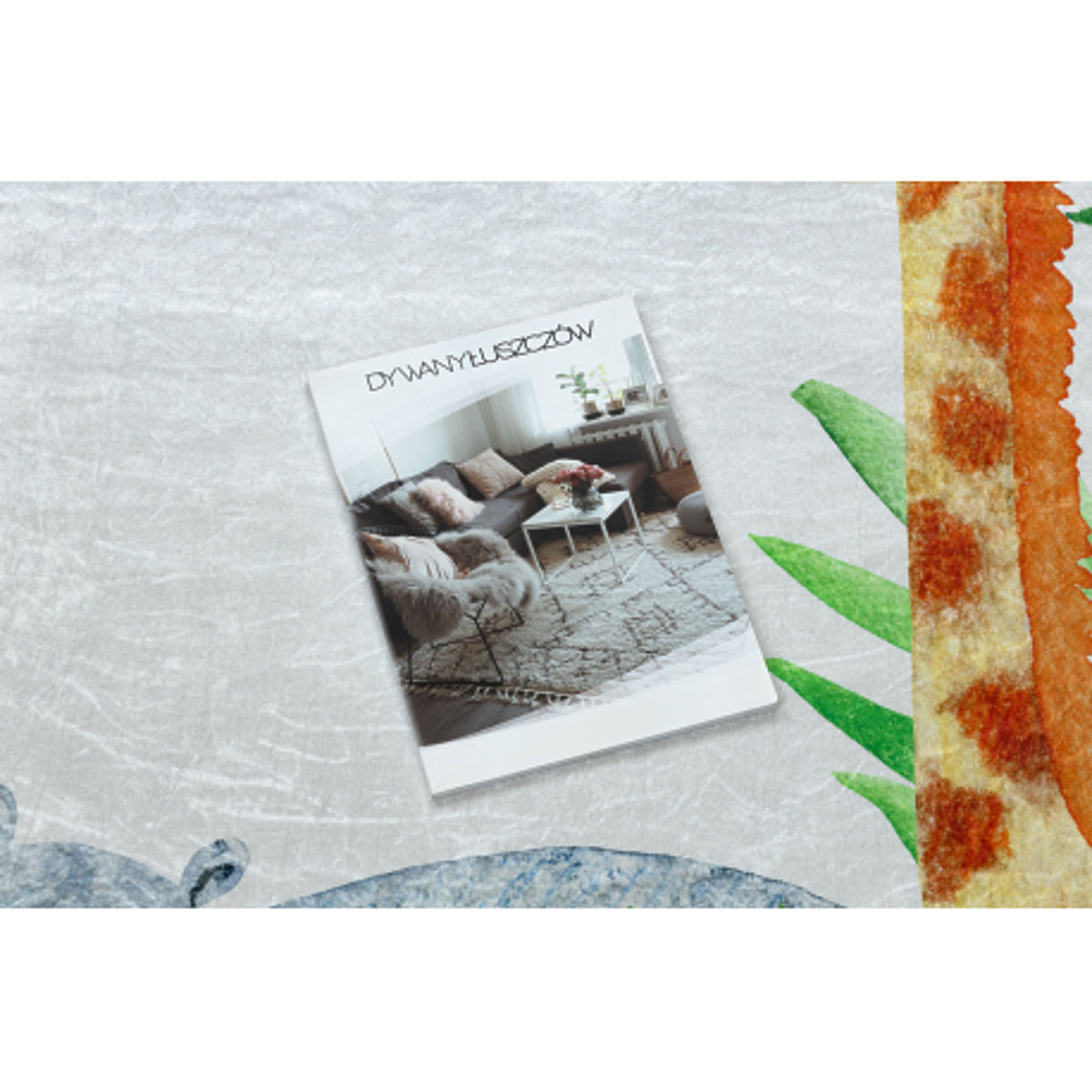 Créez une atmosphère joyeuse et ludique dans la chambre d'enfant avec le tapis rectangulaire de lavage BAMBINO 54090 au motif d'animaux africains. La combinaison de couleurs blanc et vert apporte un élément joyeux et inspirant à la pièce, idéal pour jouer, se reposer et les activités créatives. Le tapis est fabriqué à 100% en polyester, agréable au toucher, durable et facile à entretenir. Grâce à son épaisseur de 5 mm et son poids de 0,70 kg/m², il est léger, confortable et stable sur le sol. Un avantage pratique est la possibilité de le laver en machine, ce qui facilite grandement son entretien et maintient le tapis propre et frais. Le revêtement antidérapant assure la sécurité lors des jeux et minimise le risque de glissade.